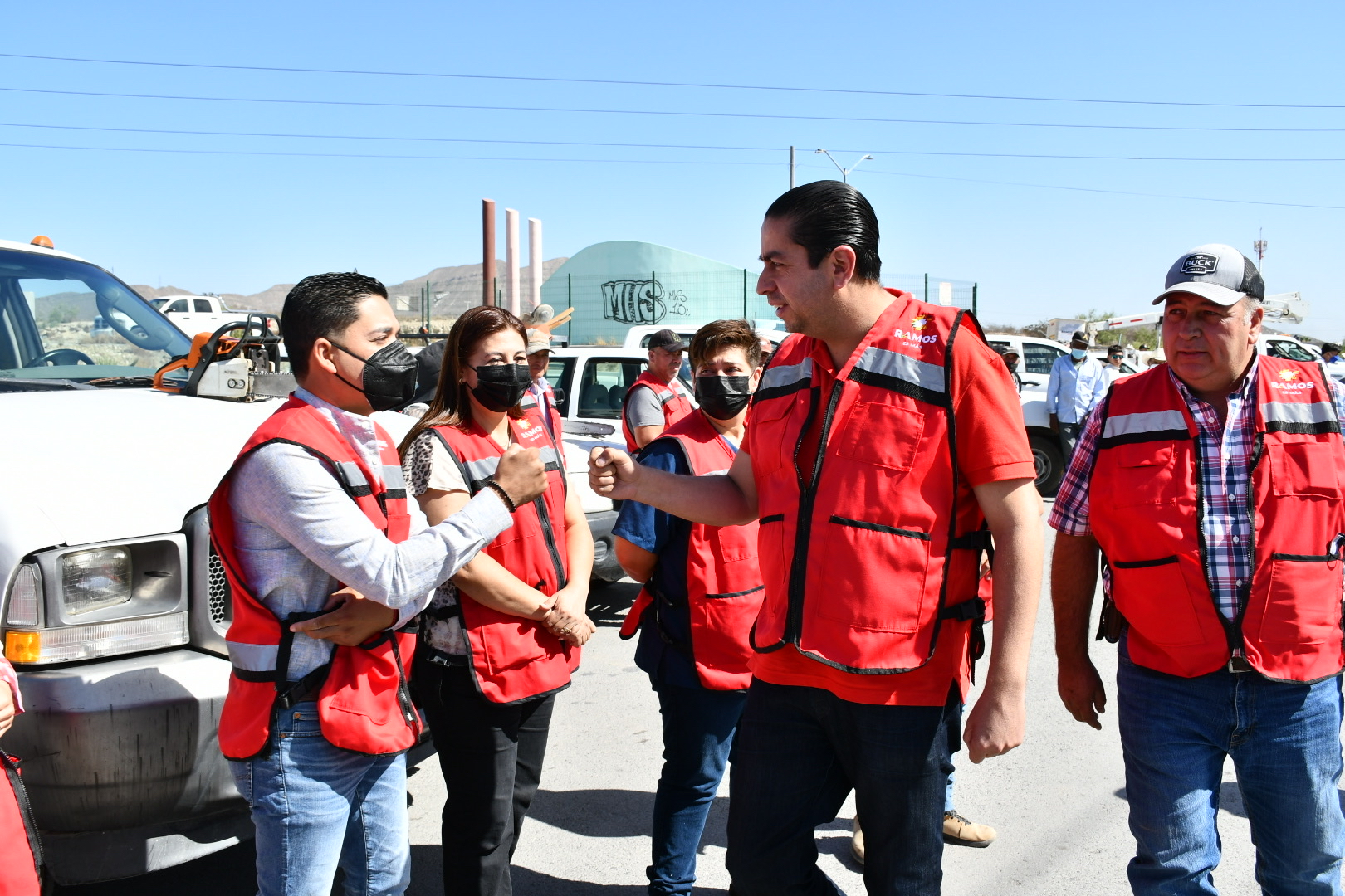 En la colonia Parajes Del Valle, al poniente de Ramos Arizpe, se dio el arranque al programa “Todos Chambeando” encabezado por el alcalde Chema Morales Padilla, con el cual se comenzó con el apoyo de más de 100 trabajadores de la administración que participarán en diversas tareas de limpieza y embellecimiento para mejorar el entorno del área urbana del municipio.