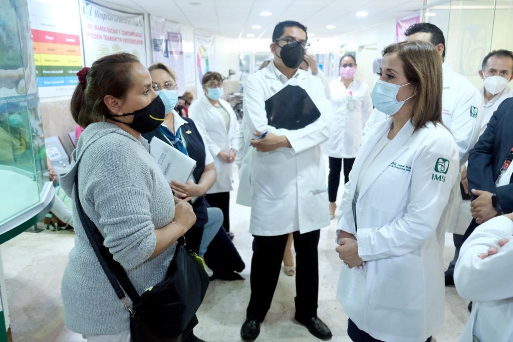 En dichas visitas, la directora de Prestaciones Médicas dialogó con familiares en las inmediaciones de los nosocomios, con relación a la estancia, ocupación de camas y atención por parte del personal de salud, y escuchó las necesidades de los derechohabientes.