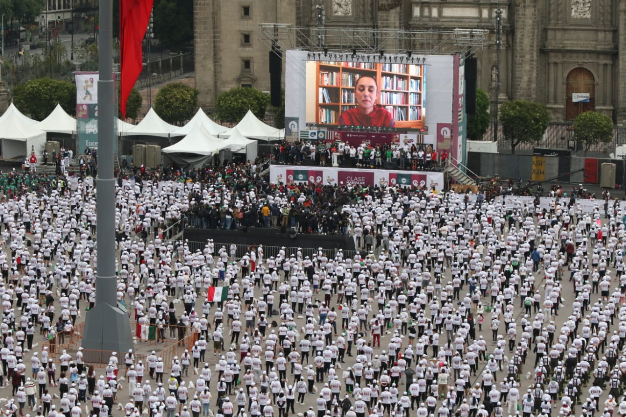 Ciudad de México.- La plancha del Zócalo de la Ciudad de México se pintó con los colores de la bandera de México para mostrarle al mundo que el boxeo es parte de nuestra cultura y todo esto para hacer historia y romper el Récord Guinness con las Clase Masiva de Box.