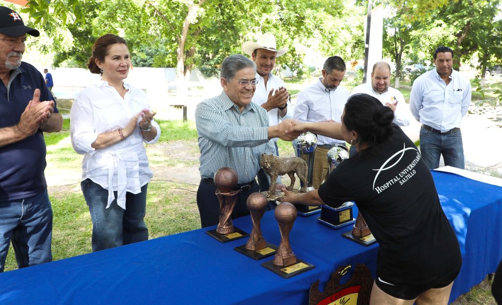 A la premiación realizada en el Recreativo de la Sección 5, de Parras de la Fuente, asistieron, el rector de la UA de C, Salvador Hernández Vélez; el coordinador general del Deporte, David Hernández Barrera; el coordinador de Unidad Saltillo, Julio Saucedo Zul; la coordinadora de Unidad Torreón, Sandra López Chavarría; el coordinador de Unidad Norte, Luis Carlos Talamantes Arredondo, y el alcalde de Parras de la Fuente, Fernando Orozco Lara.
