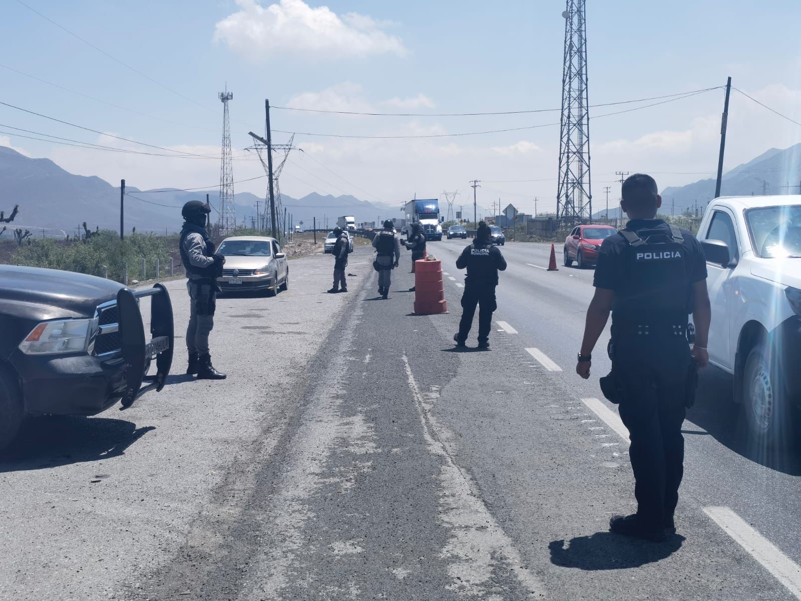 Las vías que se encuentran con filtros de prevención son la carretera Monterrey-Saltillo a la altura de la empresa Kimberly Clark, y la carretera federal número 57 rumbo a Monclova, a la altura del ejido Mesón del Norte, donde apoyan una decena de elementos.