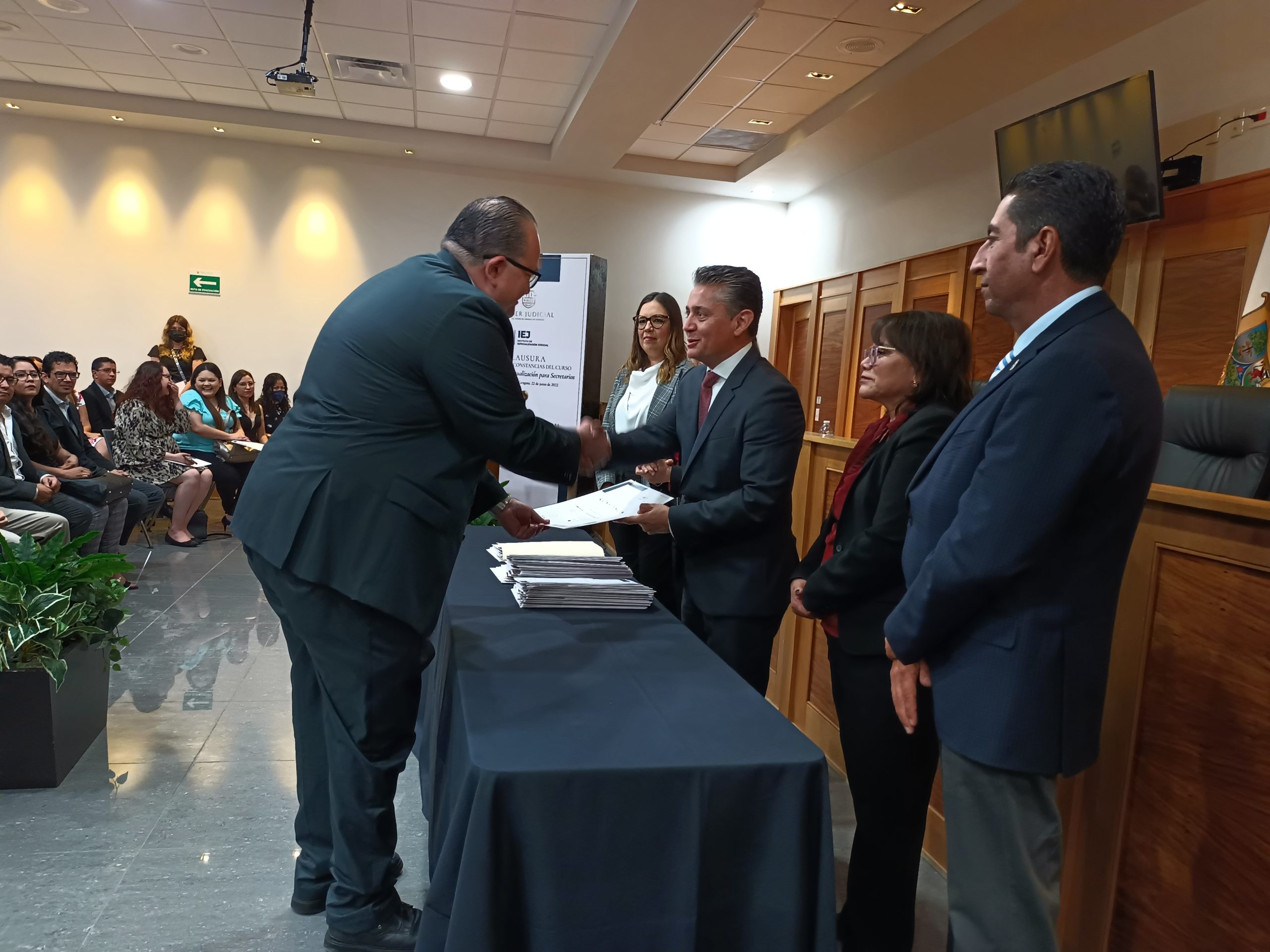 El evento de clausura fue encabezado por el presidente del Poder Judicial de Coahuila, Miguel Mery Ayup, quien en su mensaje señaló que ese órgano de gobierno está comprometido con los principios y valores que deriven en un sistema judicial profesional, transparente y eficiente, e indicó que uno de los grandes objetivos de su gestión es garantizar a toda persona un servicio profesional en la impartición de justicia.