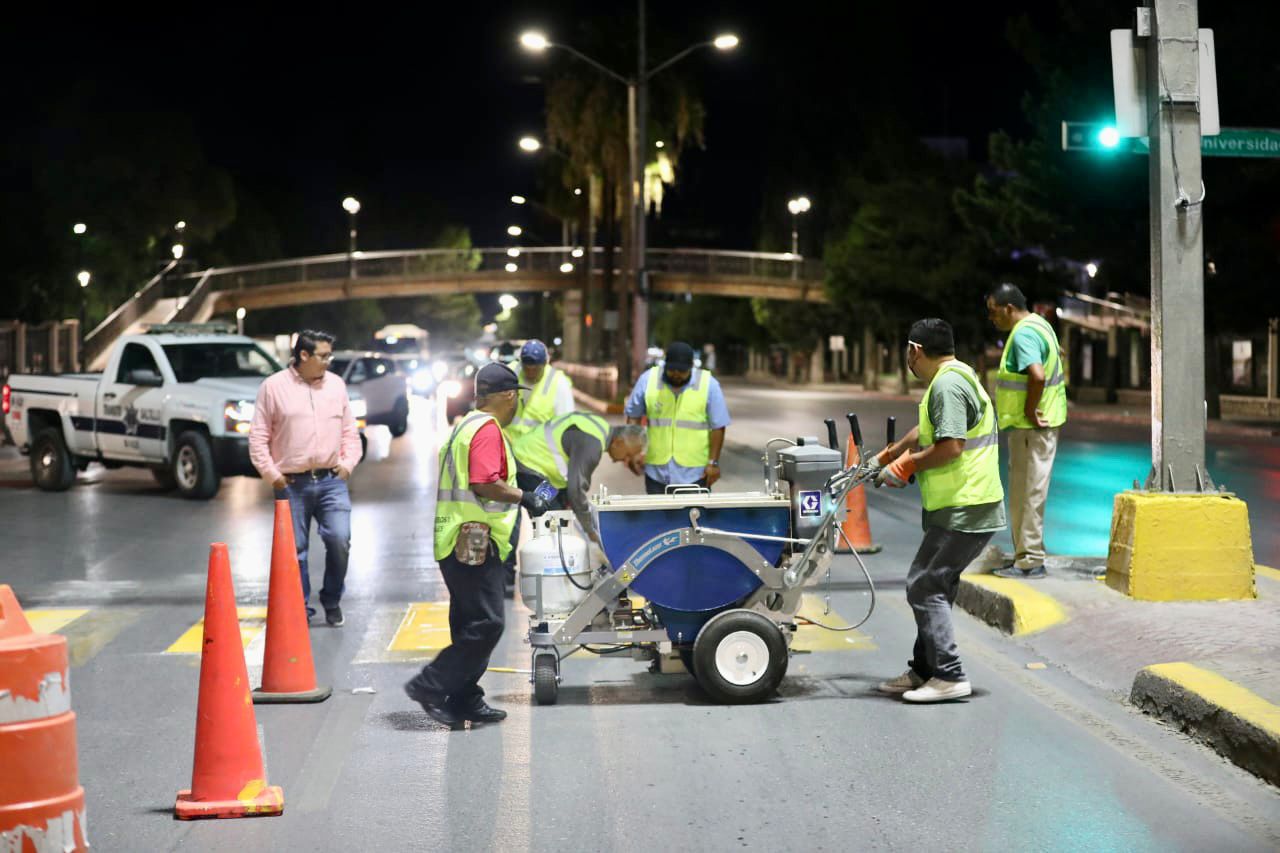 La Comisaría de Seguridad y Protección Ciudadana informó que como parte de los trabajos por la seguridad vial, en Saltillo se lleva a cabo un programa para pintar líneas peatonales en cruces de calles en las que se utiliza pintura termoplástica para mayor duración.