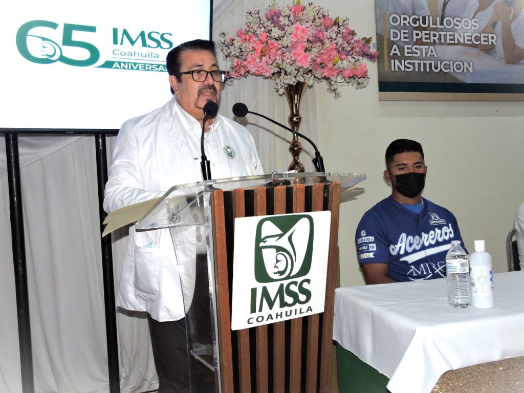 También estuvieron en el presídium, el secretario general de la Sección XII, Alejandro Cantú López; el jefe de prestaciones médicas, Rodolfo Daniel Díaz Carranza; el subdirector del HGZ No. 7, Oscar Eduardo Rodríguez Flores y como invitados especiales Roberto Casto y Aldo Núñez, jugadores del equipo de béisbol Acereros de Monclova.