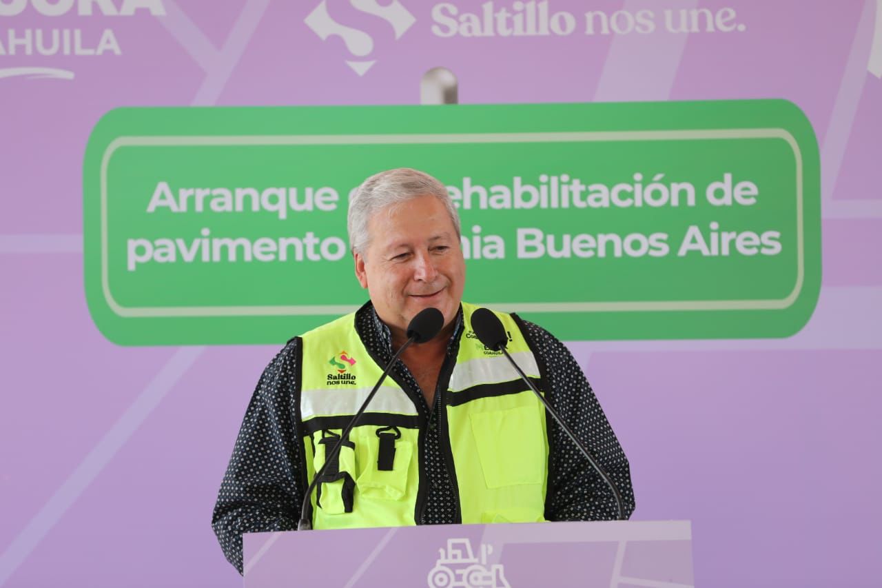 Con trabajos de pavimentación, el alcalde José María Fraustro Siller llevó el 1er Maratón de Obras Saltillo Nos Une a la colonia Buenos Aires donde señaló que este gran programa avanza firme con el apoyo del gobernador Miguel Ángel Riquelme Solís.