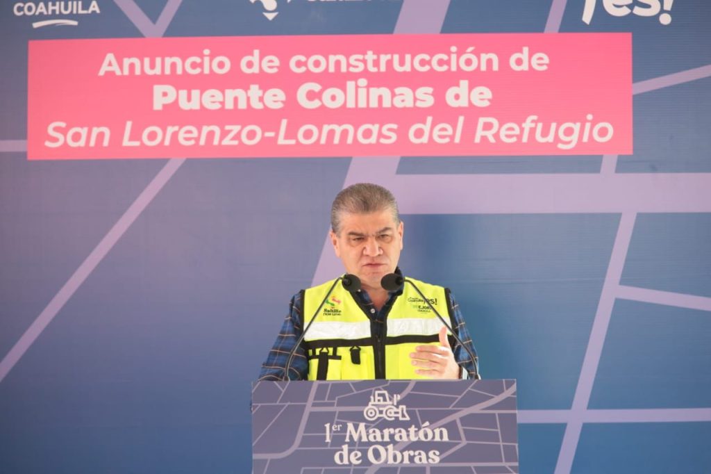 “Con trabajo en equipo, en Coahuila se desarrollan obras que atienden las principales demandas de la población”, dijo el gobernador Miguel Ángel Riquelme Solís al poner en marcha, junto al alcalde José María Fraustro Siller, la construcción del puente vehicular que unirá a las colonias Colinas de San Lorenzo y Lomas del Refugio, al sur de Saltillo.
