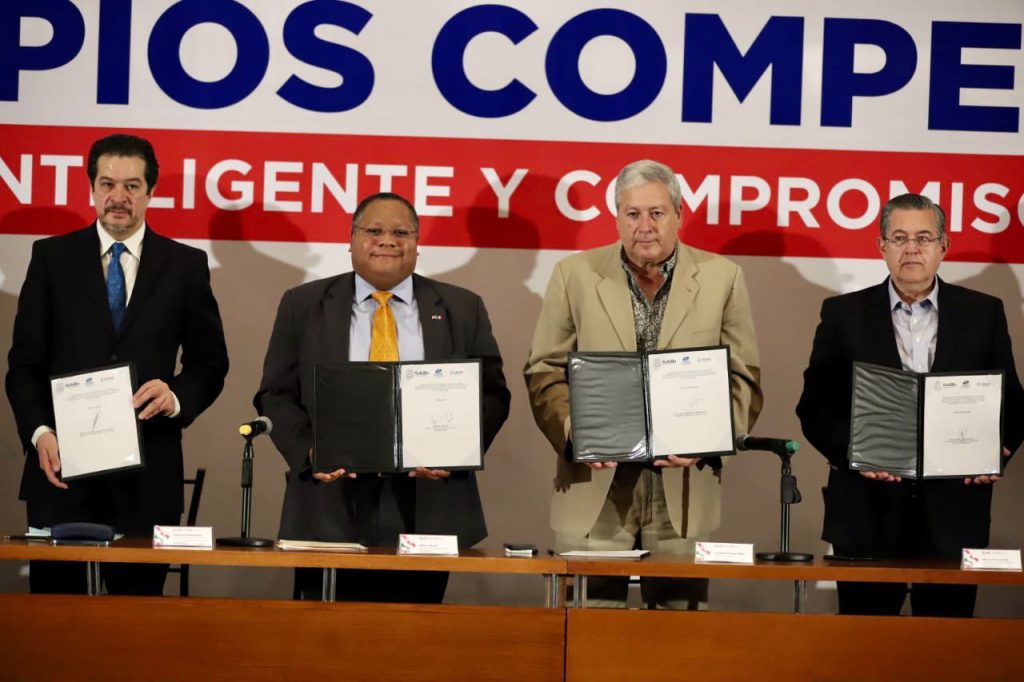 Este miércoles el alcalde José María Fraustro Siller, firmó un convenio con el Centro de Estudios Económicos del sector privado y el Consejo Coordinador Empresarial, para favorecer una mayor competitividad del Municipio, promover la Mejora Regulatoria Municipal e incrementar el compromiso del empresariado local de participación y cumplimiento, en el evento estuvo presente Roger C. Rigaud, Cónsul General de Estados Unidos en Monterrey.