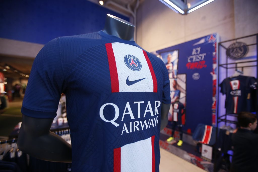 Por otro lado, además de los logotipos de Nike y del propio PSG, aparece impreso el nombre de la aerolínea Qatar Airways, su nuevo patrocinador principal, que reemplaza al operador hotelero francés Accor. En la manga izquierda se lee la palabra GOAT, alusiva a una plataforma en línea de venta de artículos de lujo, sustituyendo al logo del Banco Nacional de Qatar (QNB).