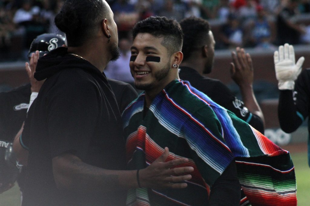 Missael Rivera abrió con hit al central, Josuan Hernández recibe base, ambos avanzan con toque perfecto de Carlos Mendivil, Julián Castro se embasa en jugada de selección, mientras Missael Rivera llega safe en home a pesar del esfuerzo de Xorge Carrillo; Tomo Otosaka remolca a Hernández con rola para la octava del Sarape.