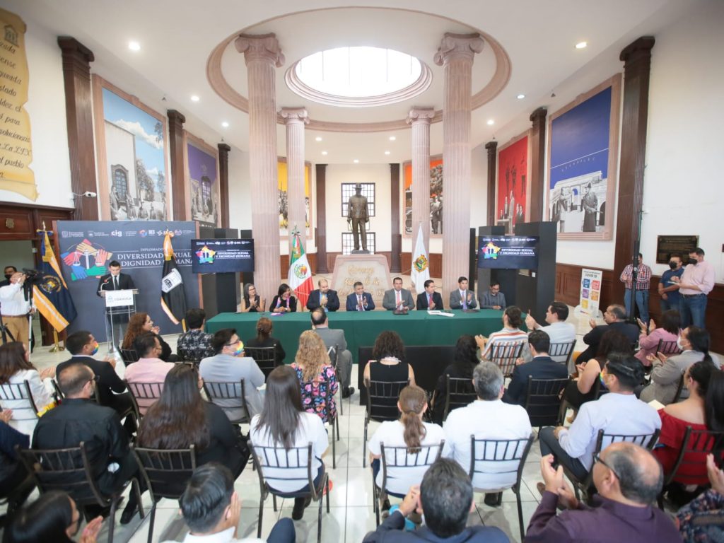 El diputado Eduardo Olmos Castro, Presidente de la Junta de Gobierno del Congreso del Estado, presidió la ceremonia de entrega de certificados de la Primera Generación del Diplomado “Diversidad Sexual y Dignidad Humana”, misma que se llevó a cabo en el vestíbulo del Congreso del Estado.