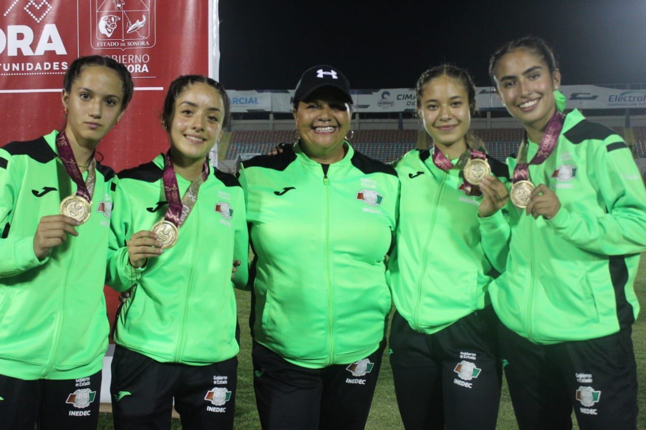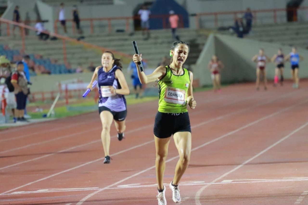 En esta ocasión, el equipo de la modalidad de 4 x 100 en Relevos Femenil Sub 18, conformado por Jimena Ordaz, Camila González, Mariana Becerra y Maria Fernanda García, que consigue su segundo metal dorado en la competencia, hizo una gran carrera para conseguir el Oro, dejando en el segundo puesto a Tamaulipas y en el tercero a Baja California.