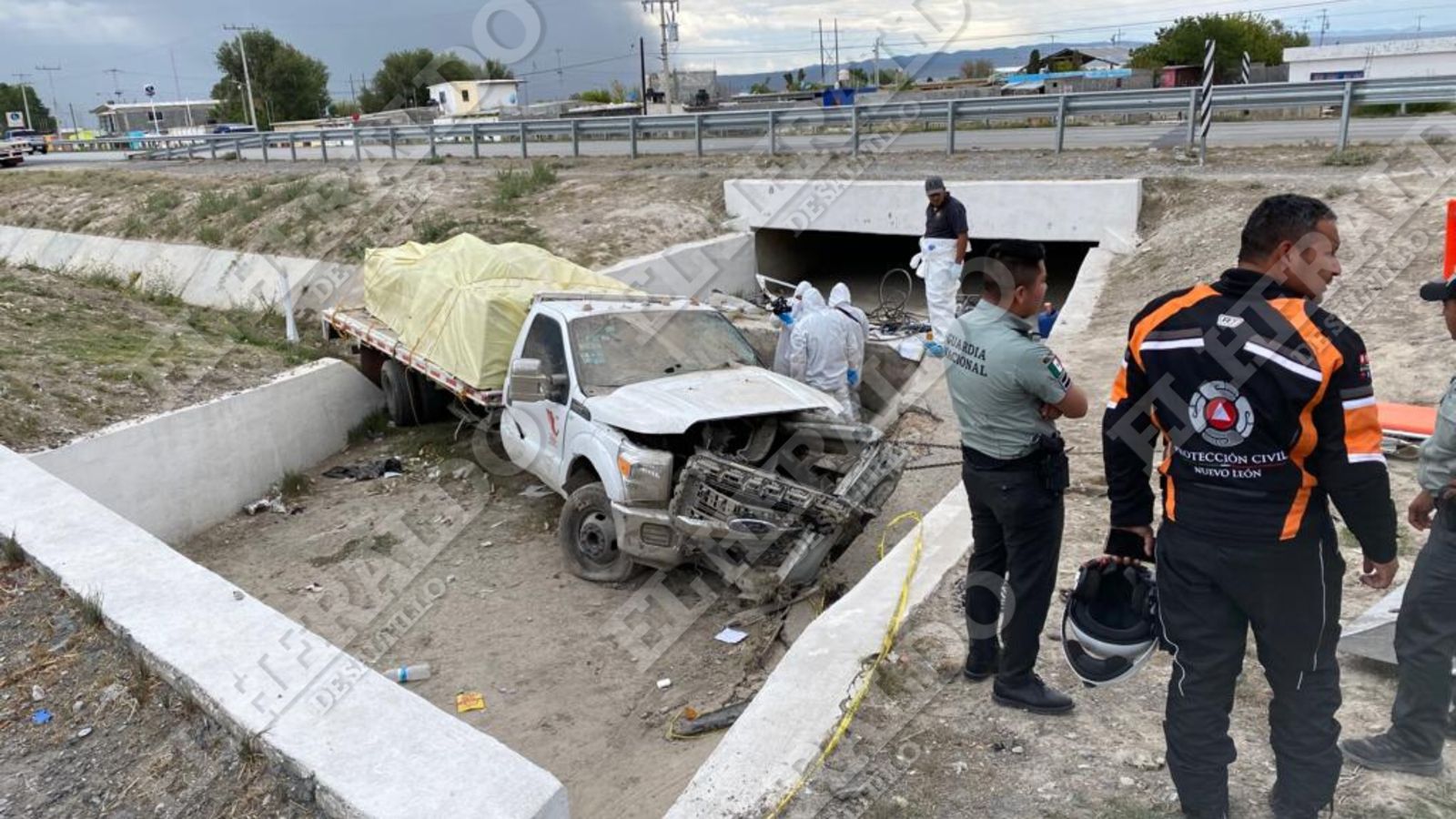 San Rafael, Galeana.- Omar Nieves perdió la vida luego de impactar su camión de carga en contra de la barrera metálica de contención y posteriormente caer hacia un canal pluvial.