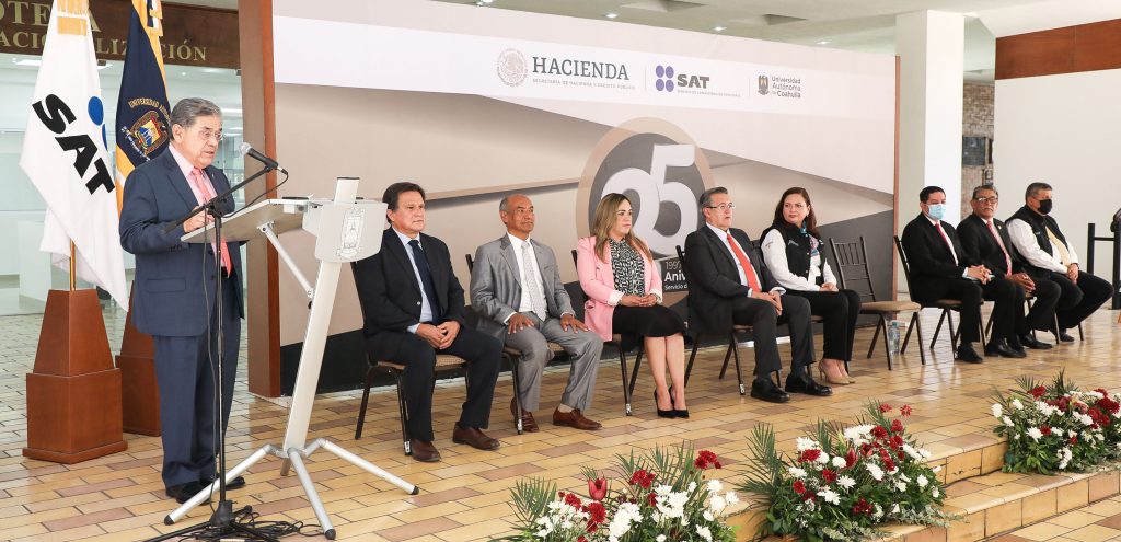 El rector de la Universidad Autónoma de Coahuila, Salvador Hernández Vélez, reconoció al Servicio de Administración Tributaria (SAT) por la labor que desempeña en la recaudación de impuestos, tarea que impacta directamente al desarrollo del país en programas, acciones, políticas públicas como educación, salud, seguridad, comunicaciones, entre otras.