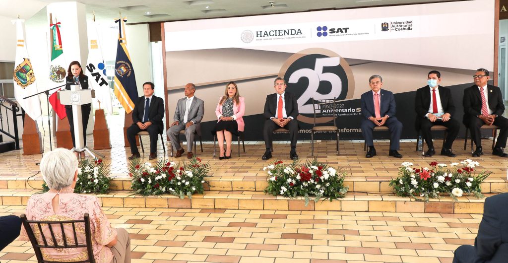 Lo anterior, en la Facultad de Jurisprudencia de la UA de C en donde se llevó a cabo la ceremonia y develación de placa por el 25 Aniversario del SAT, a la que asistieron la Administradora General Jurídica, y egresada de la máxima casa de estudios, Guadalupe Araceli García Martínez, en representación de Raquel Buen Rostro Sánchez jefa del Servicio de Administración Tributaria en el país.
