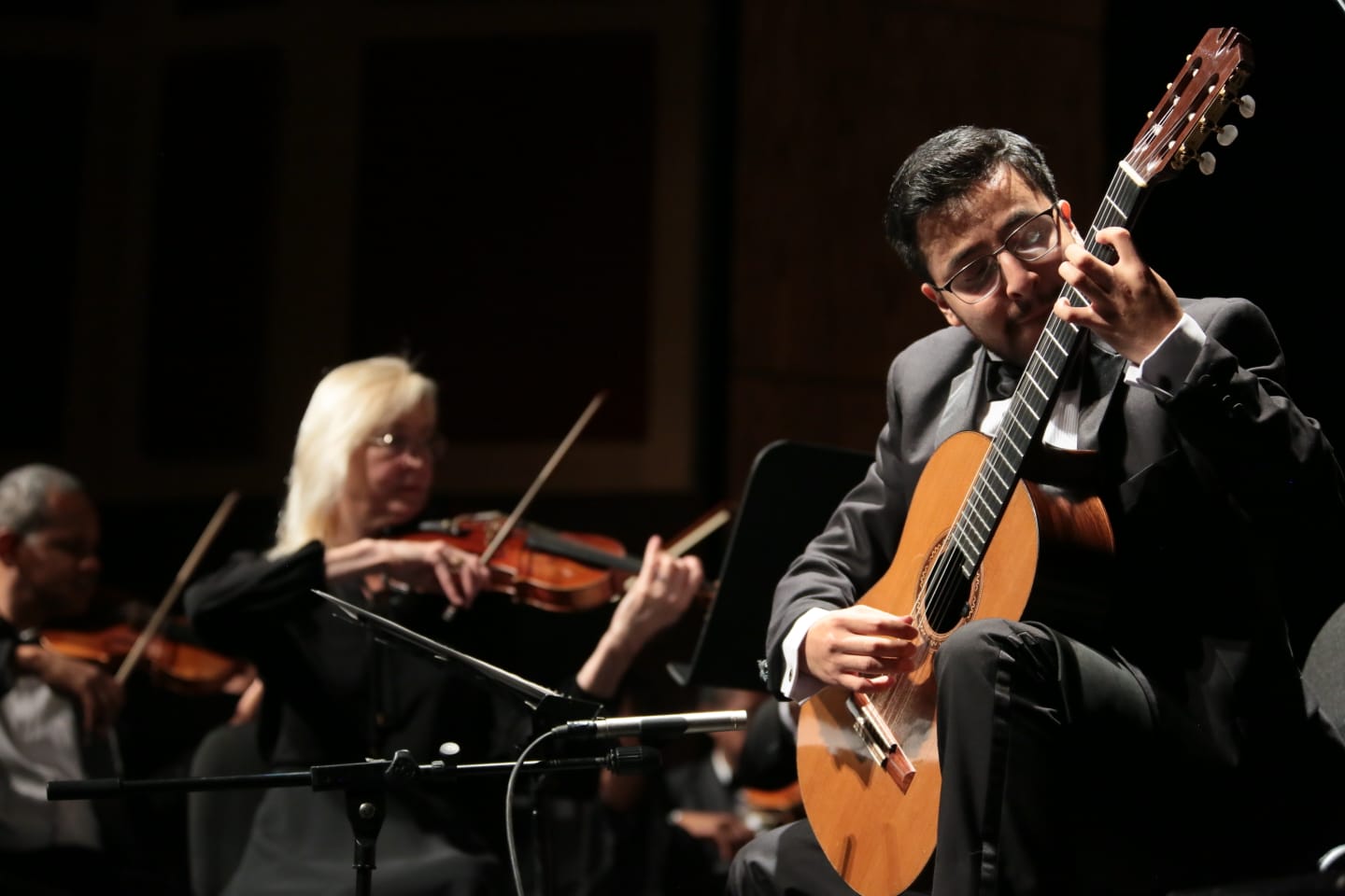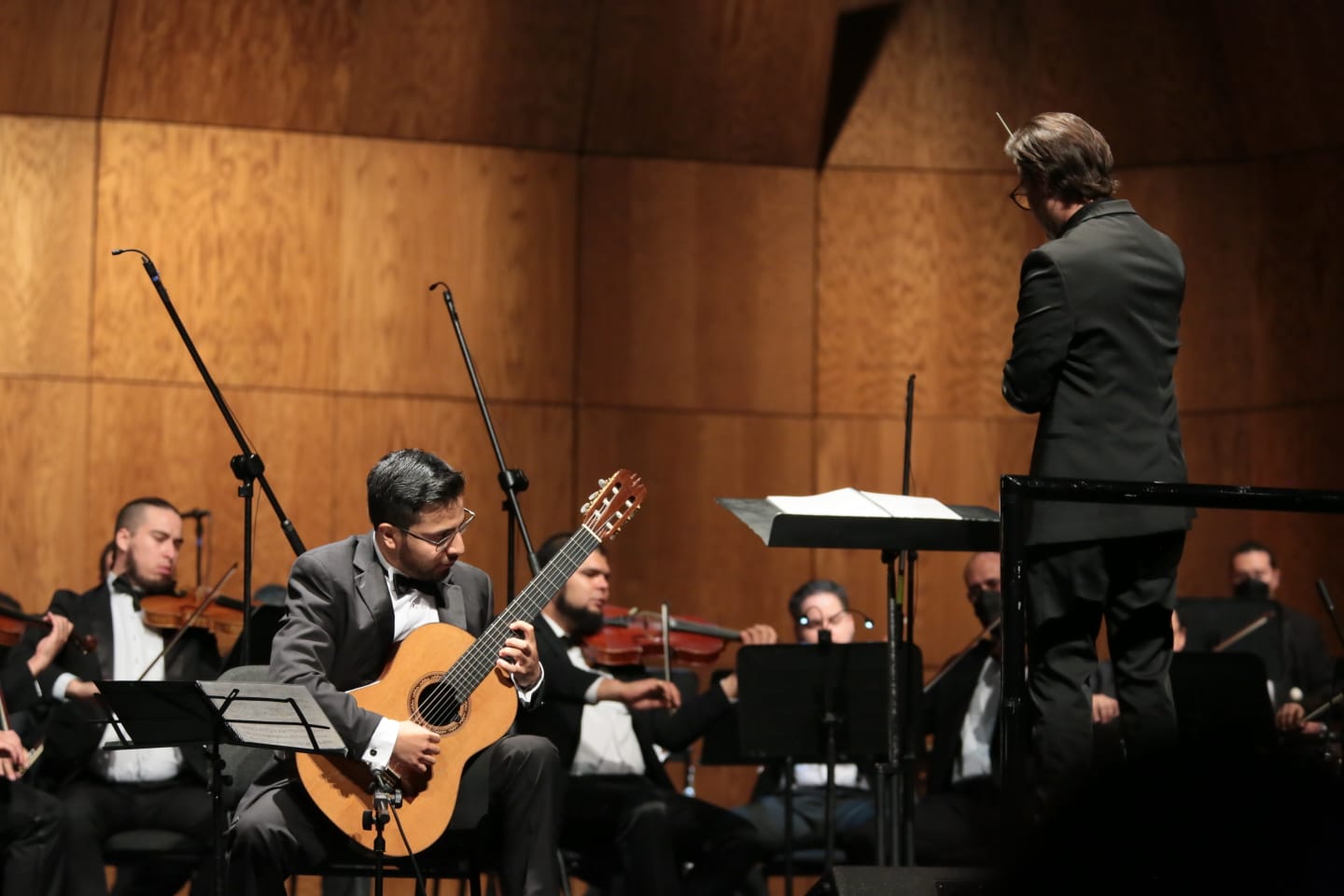 El Teatro Fernando Soler fue el escenario perfecto para disfrutar del gran concierto con la OFDC y los guitarristas invitados, quienes interpretaron Paisaje Cubano, de Leo Brouwer, y Concierto Mexicano, de Guillermo Diego.