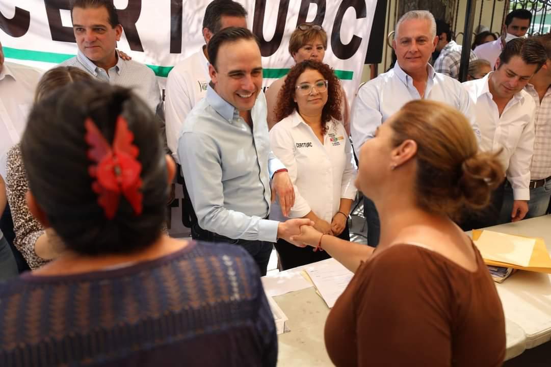 “En Torreón junto con nuestros amigos el alcalde Román Alberto Cepeda, el Secretario Enrique Martínez y Morales y nuestros equipos de trabajo instalamos los módulos para que nuestra gente de la colonia Las Julietas puedan tramitar sus escrituras que, por situaciones jurídicas desde hace más de 15 años, no pudieron tramitar. Hoy gracias al trabajo en equipo ya empezamos con estas gestiones y en un par de meses estaremos de vuelta con el Gobernador Miguel Ángel Riquelme Solís para que haga entrega de escrituras a cientos de familias de esta colonia”, destacó Manolo Jiménez.