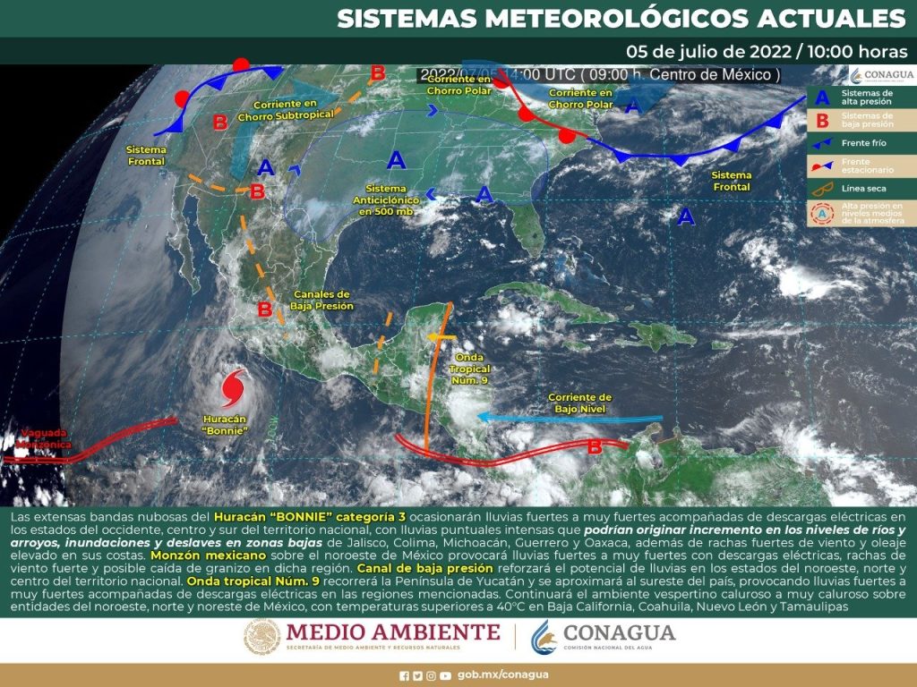 Ciudad de México.- “Bonnie” incrementó la velocidad de sus vientos y ahora es huracán categoría 3 en la escala Saffir-Simpson, así lo informó la Comisión Nacional del Agua.