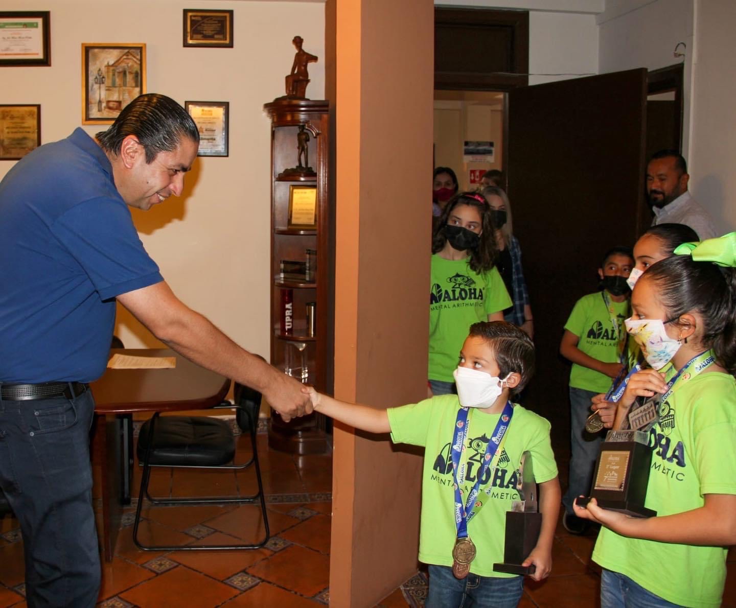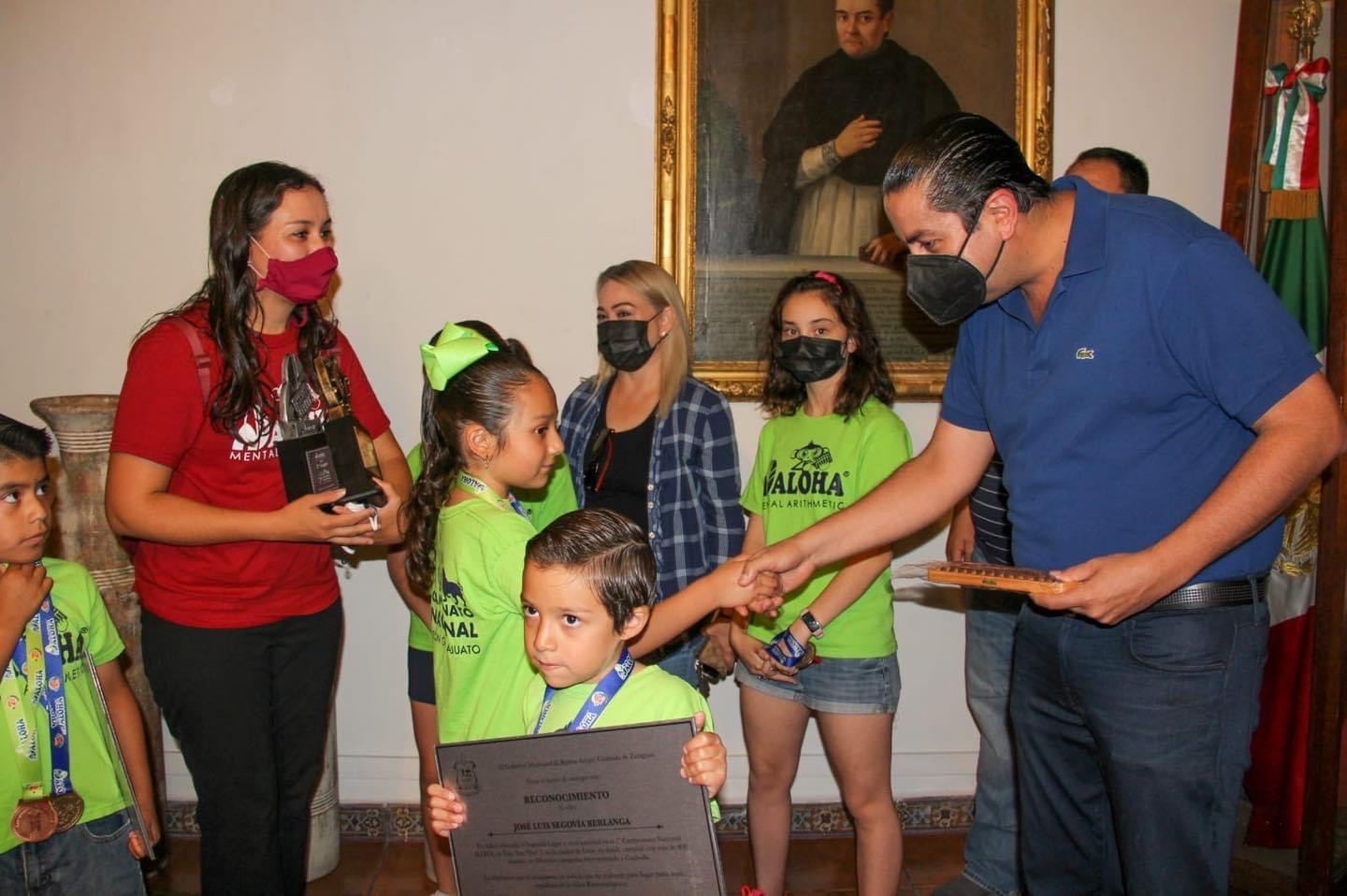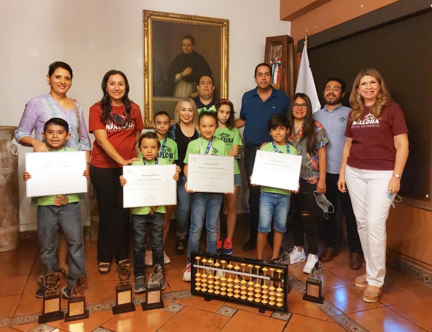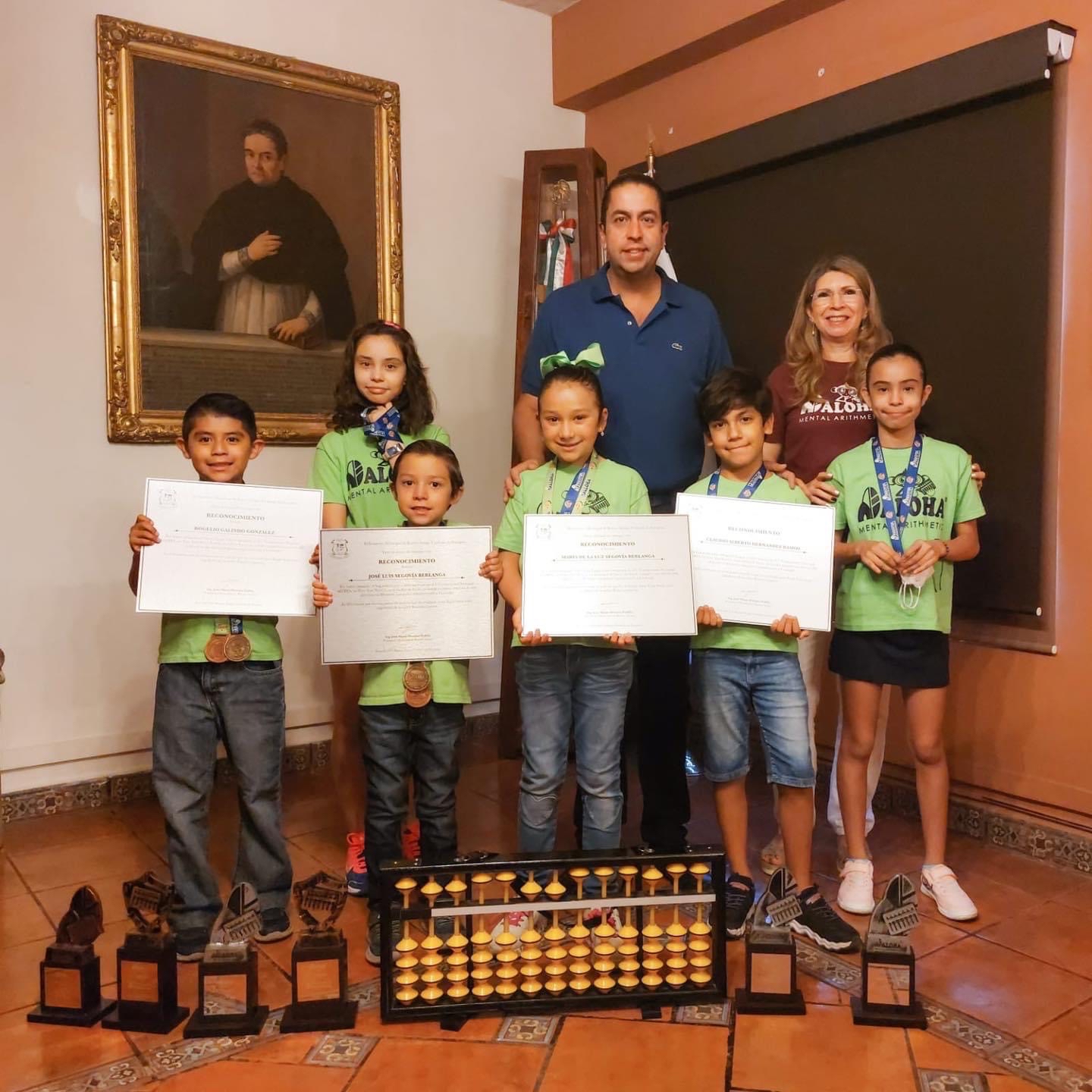 “Mis felicitaciones y reconocimiento para Maria de la Luz Segovía Berlanga, José Luis Segovía Berlanga, Claudio Alberto Hernández Ramos y Rogelio Galindo González por su excelente desempeño en el 7º Campeonato Nacional ALOHA en la ciudad de León, en donde participaron más de 800 alumnos en diferentes categorías, resolviendo 70 operaciones matemáticas en menos de 5 minutos. ¡No cabe duda que en #RamosArizpe hay talento! ¡Enhorabuena!”, señaló el alcalde.