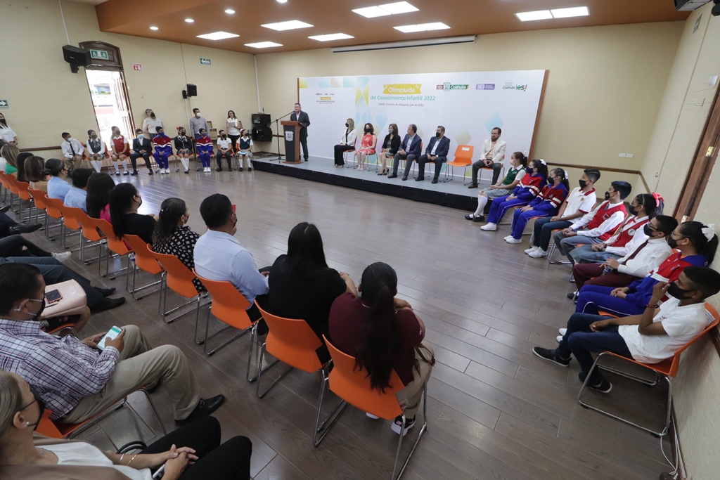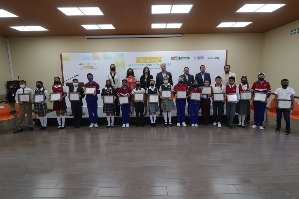El martes 18 alumnos de sexto de Primaria y 15 maestros, procedentes de diferentes regiones de Coahuila, recibieron diploma de reconocimiento y una computadora como estímulo, al ser los ganadores de la etapa estatal de la Olimpiada del Conocimiento Infantil (OCI) 2022.