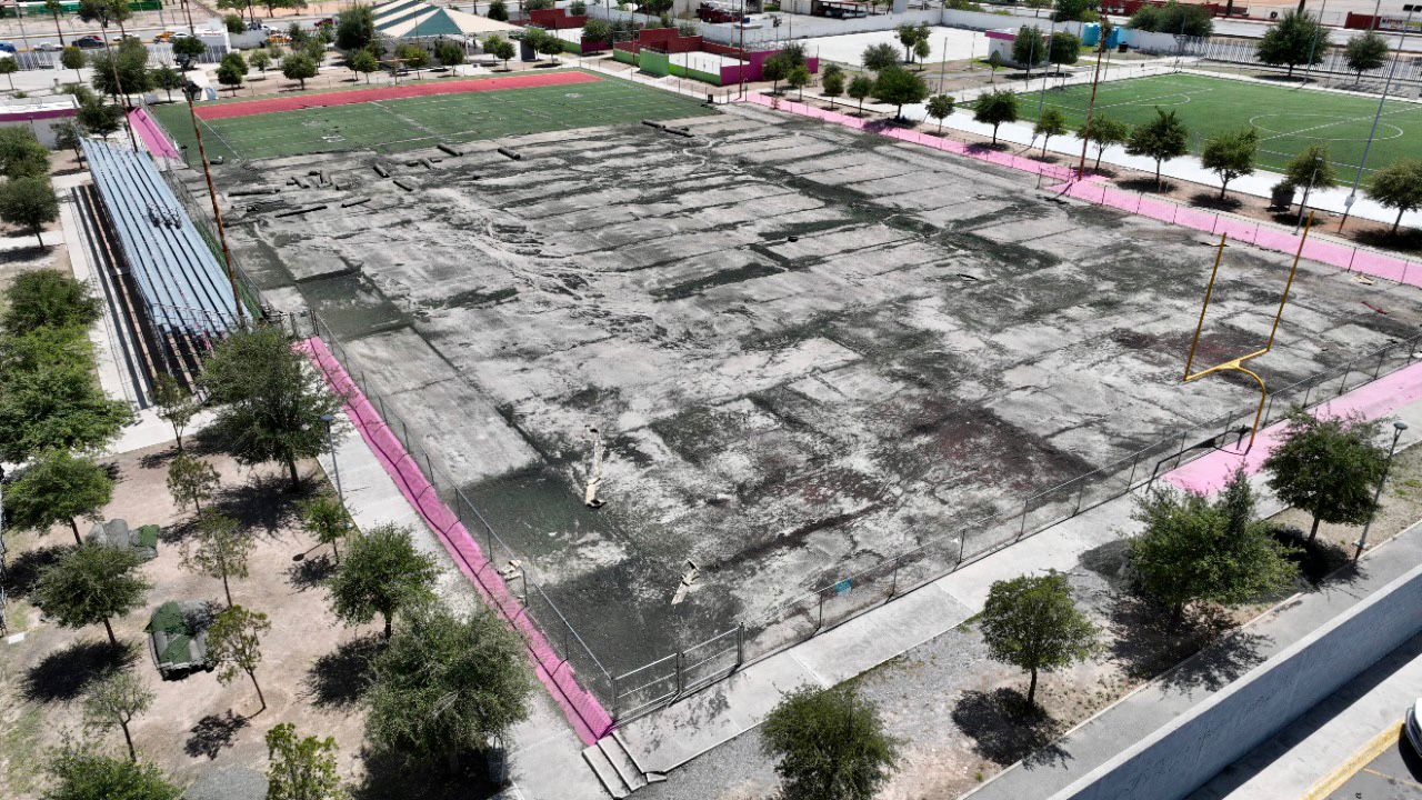 Los trabajos de rehabilitación de la cancha de fútbol americano en el Biblioparque Sur, así como de canchas de fútbol en el parque Jesús Carranza avanzan en tiempo y forma para beneficio de los usuarios.