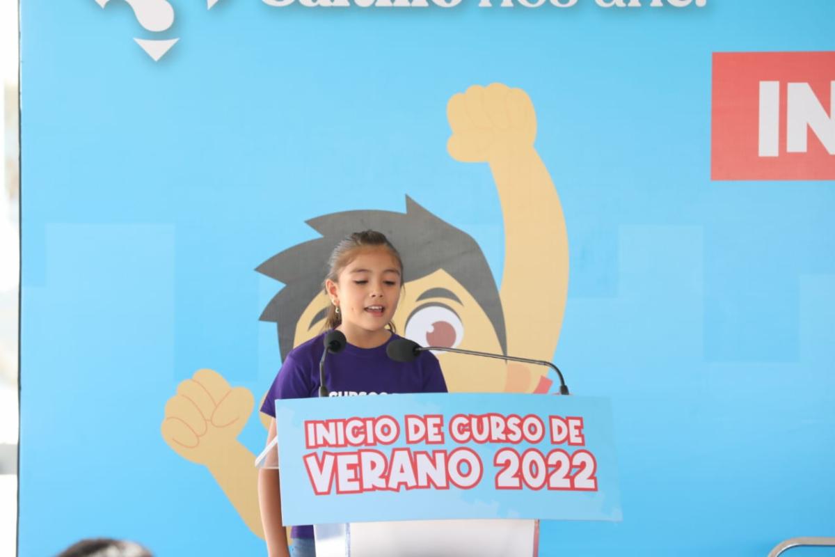 A nombre de las niñas y niños, Sofía López Monsiváis agradeció al alcalde Chema Fraustro por hacer posibles los Cursos de Verano.