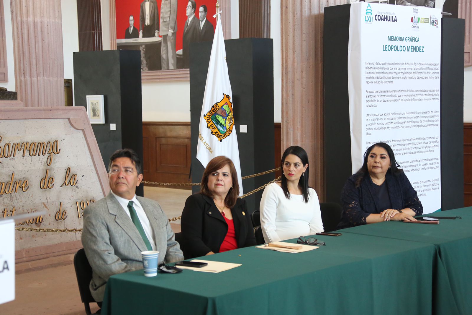 Como parte del trabajo coordinado entre el Congreso del Estado de Coahuila y el gobierno del estado, a través de la Secretaría de Cultura para fomentar la difusión del acervo cultural, este día se inauguró en el recinto legislativo la memoria gráfica “En honor a Benito Juárez” del pintor y grabador Leopoldo Méndez, en el marco del 150 aniversario luctuoso del también considerado Benemérito de las Américas, evento que contó con la participación de las diputadas María Eugenia Calderón Amezcua, coordinadora de la Comisión de Educación del Congreso local, Luz Elena Morales Núñez, presidenta de la Diputación Permanente, Martha Loera Arámbula, coordinadora de la Comisión de Presupuesto, Javier René Castrejón, director de documentación e información legislativa de este Congreso, y el Dr. Andrés Mendoza Salas, director de Museos e Historia, en representación de la secretaria de cultura en el estado, Ana Sofía García Camil.