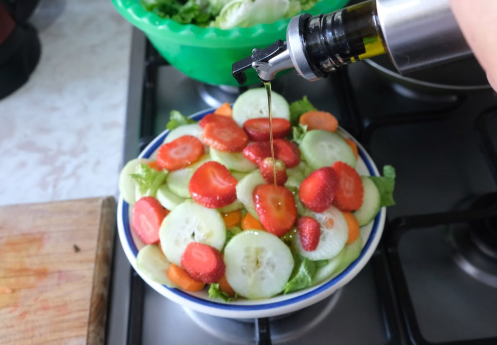 - La mitad del plato con verduras, pueden ser calabazas, zanahoria o cualquier verdura de su preferencia (crudas, al vapor o cocidas).