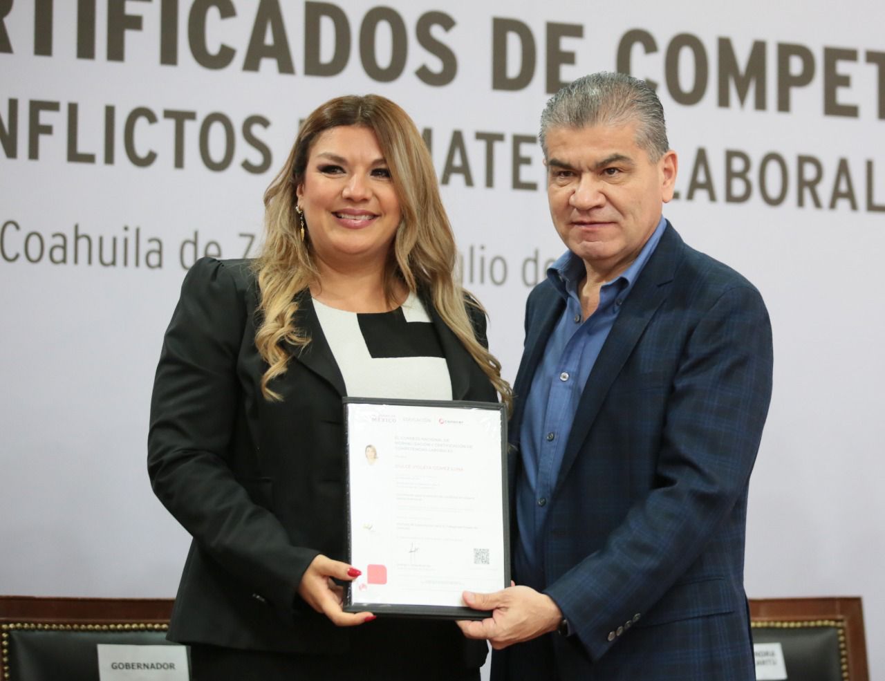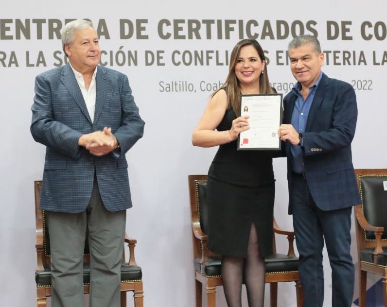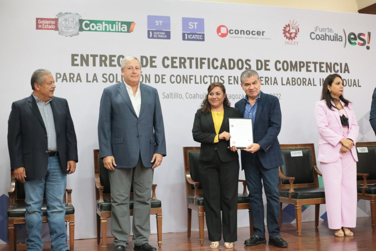 De igual manera, felicitó al Instituto de Capacitación para el Trabajo del Estado de Coahuila (ICATEC), que ha extendido sus funciones hoy a la certificación de los conciliadores conforme a los estándares oficiales de competencia laboral.