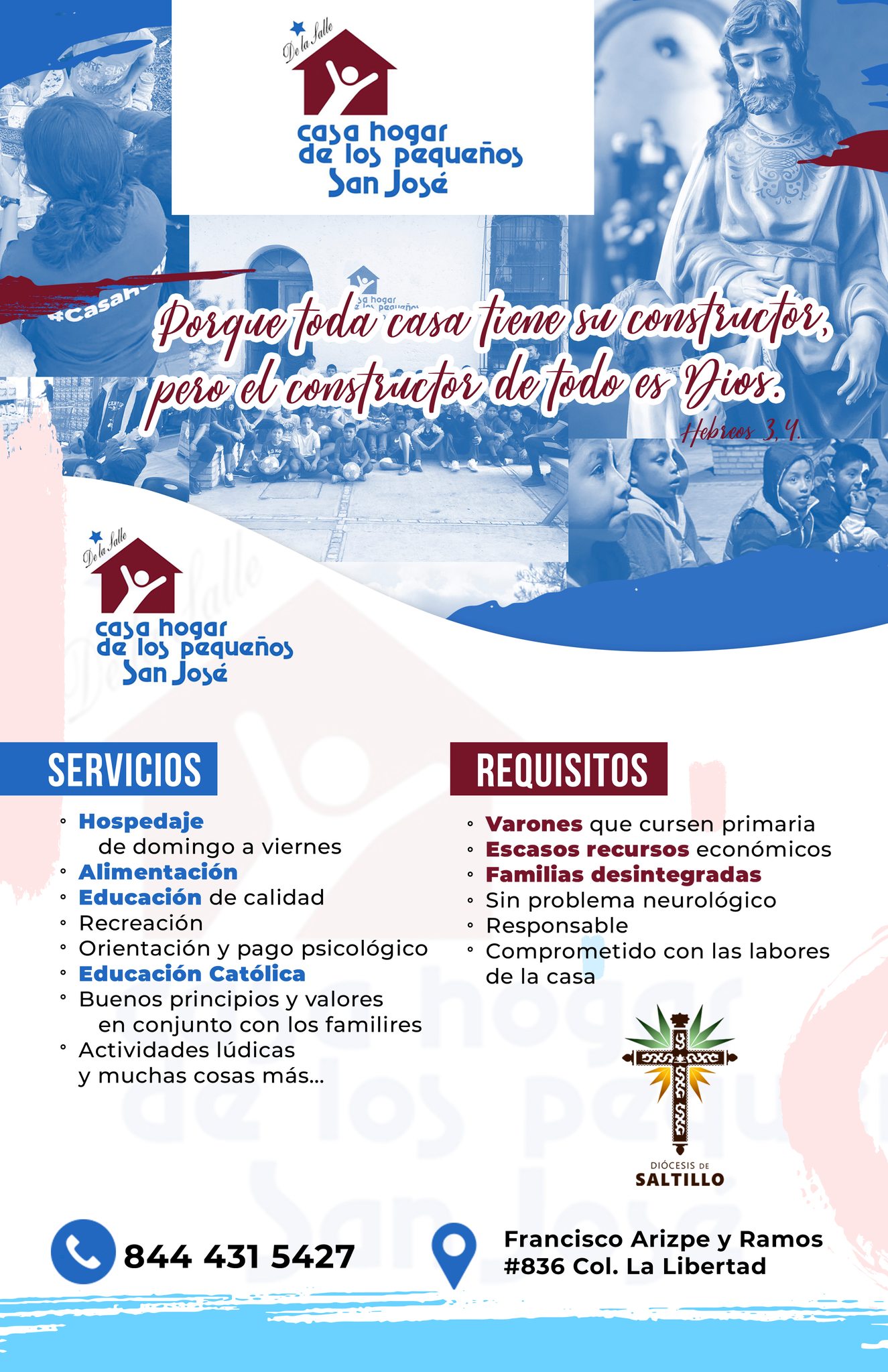 Tras dos años de no funcionar a causa de la pandemia de la Covid-19, la Casa Hogar de los Pequeños San José, en Saltillo, reabrirá sus puertas en agosto de este 2022 para dar asilo gratuito a niños y adolescentes de escasos recursos, en orfandad o que provengan de familias desintegradas.