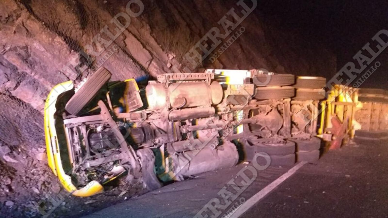 El percance se registró cuando el conductor de la pesada unidad salió del túnel, a la altura del kilómetro 231, tramo «Los Chorros”, en el municipio de Arteaga, Coahuila.
