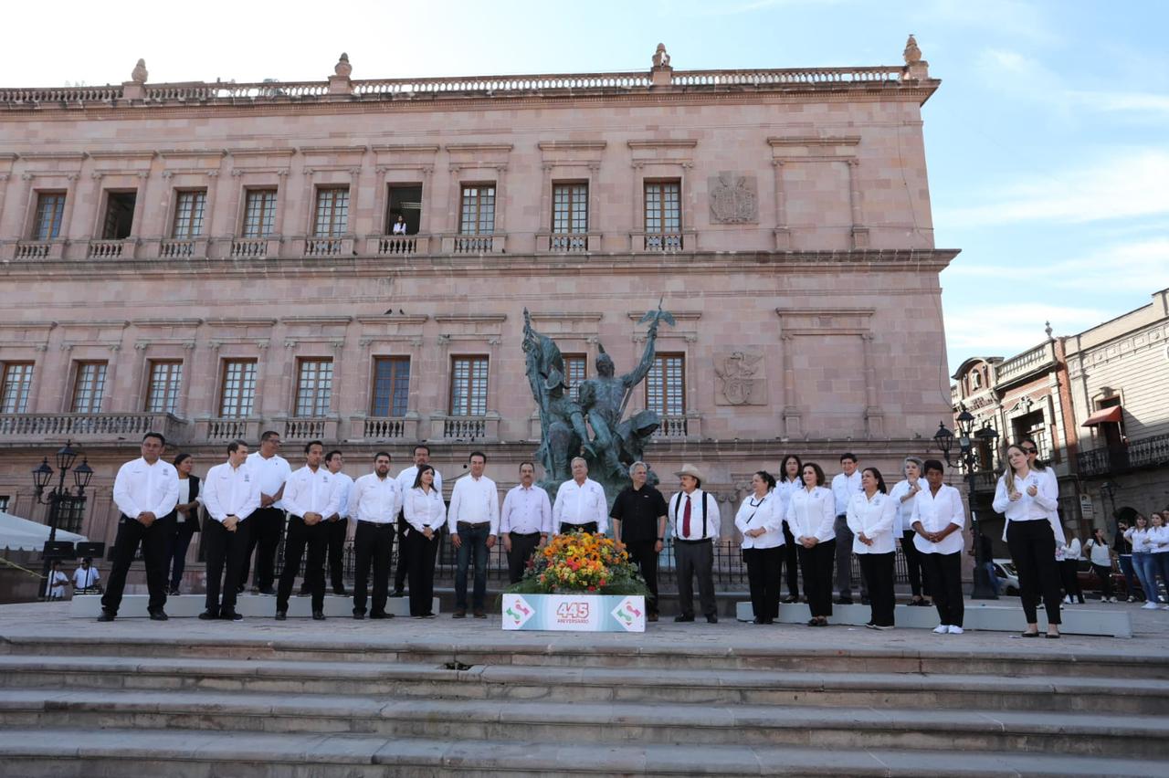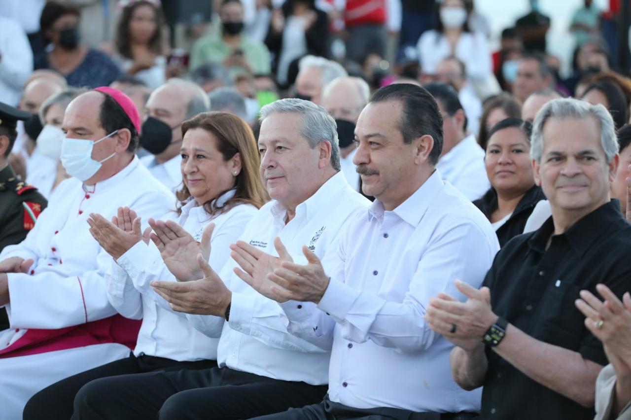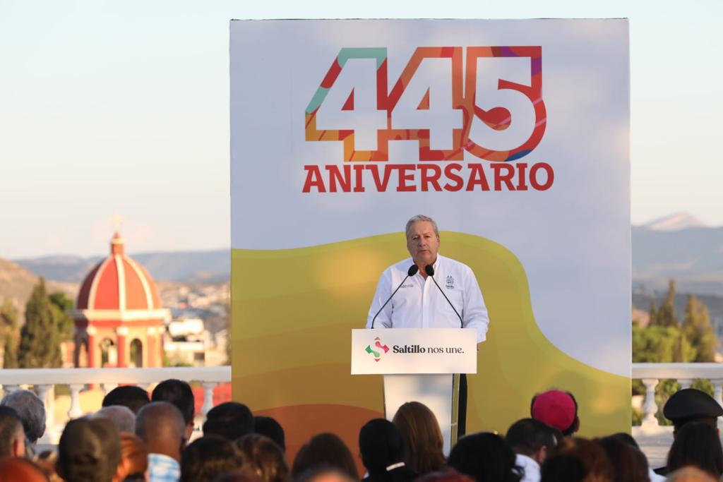En representación del gobernador Miguel Ángel Riquelme, Fernando de las Fuentes Hernández, secretario de Gobierno, resaltó que Saltillo llega a sus 445 años con un alto desarrollo social y una gran seguridad en sus calles.
