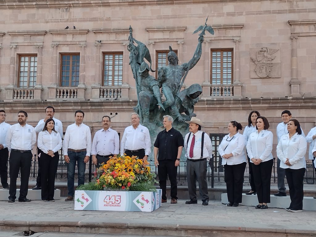 Los eventos matutinos por el 445 aniversario de Saltillo concluyeron con una guardia de honor en la Plaza de la Nueva Tlaxcala, encabezada por el alcalde Fraustro Siller y el secretario de Gobierno de Coahuila, Fernando de las Fuentes Hernández, quien asistió en representación del gobernador de Coahuila, Miguel Ángel Riquelme Solís.