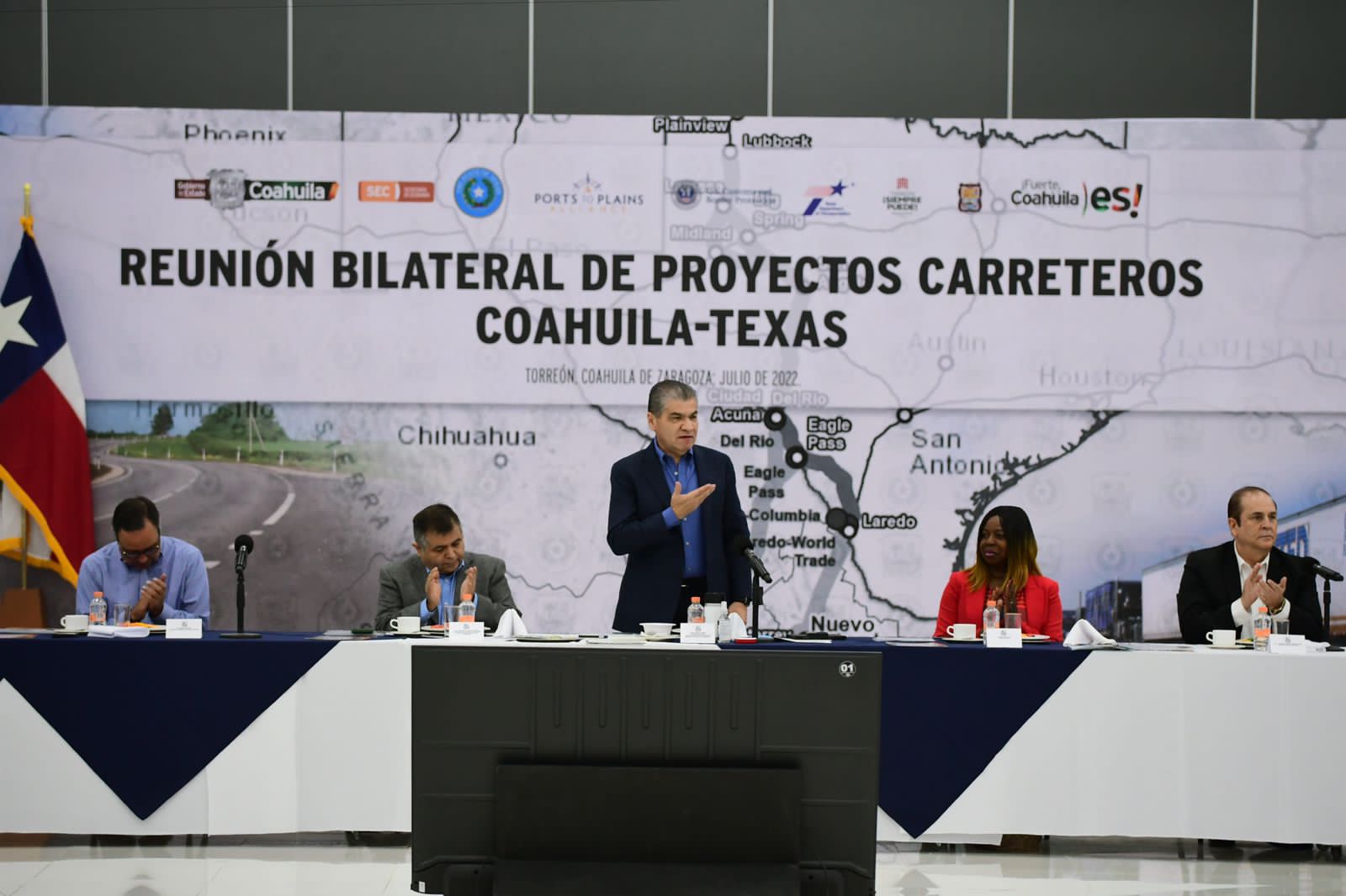 En Torreón, estados fronterizos llevan a cabo reunión bilateral de proyectos carreteros. Miguel Riquelme destaca que en lo que resta de su Administración dejará avanzado el proyecto de libramientos en el esquema de Asociación Pública-Privada