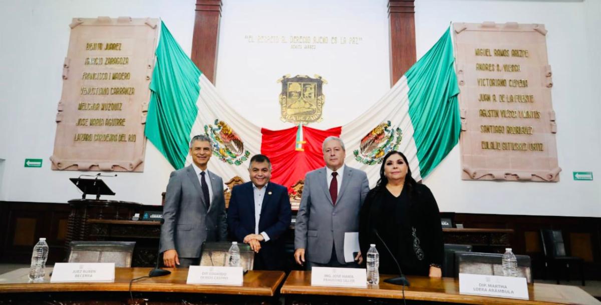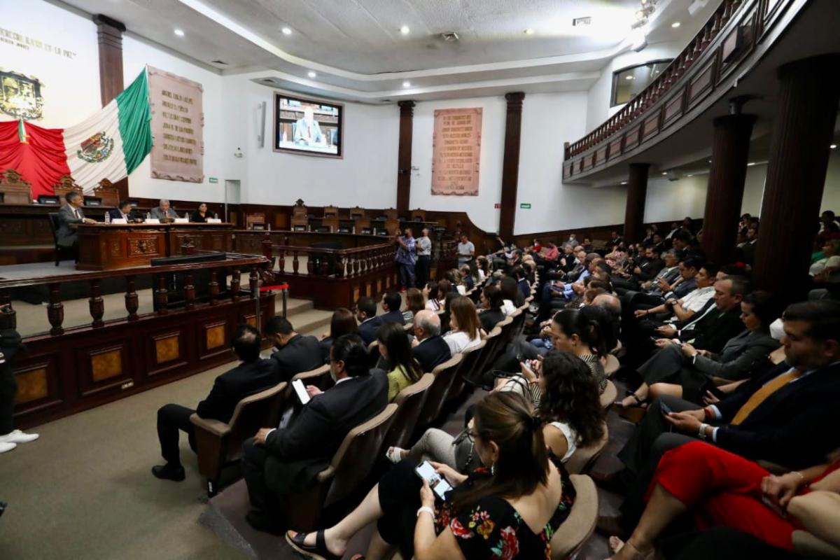 Eduardo Olmos Castro, presidente de la Junta de Gobierno del Congreso del Estado, recibió al alcalde y al juez en el Congreso donde expuso algunas de las actas que se resguardan.
