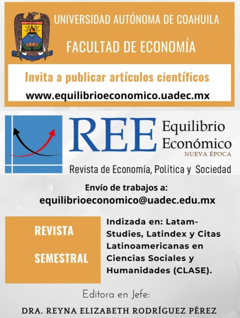 La Facultad de Economía de la Universidad Autónoma de Coahuila invita a la comunidad universitaria y al público en general a enviar colaboraciones para publicar en la revista “Equilibrio Económico”, la convocatoria está abierta de manera permanente.