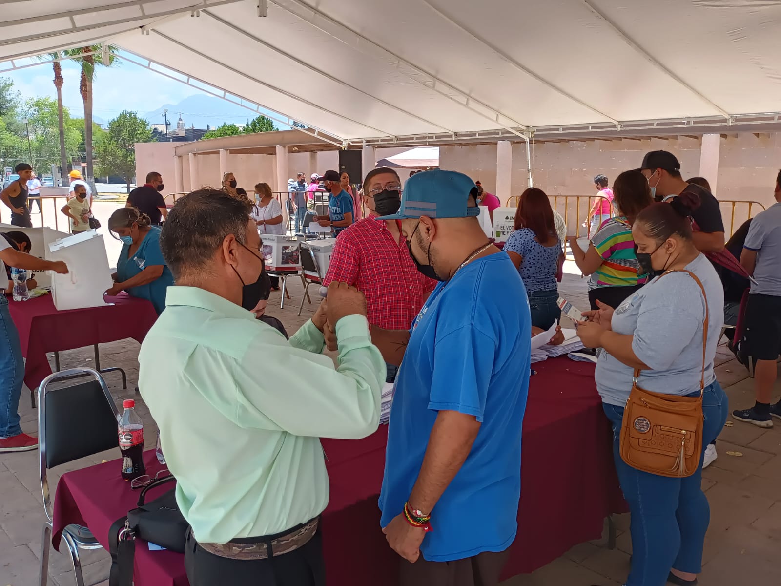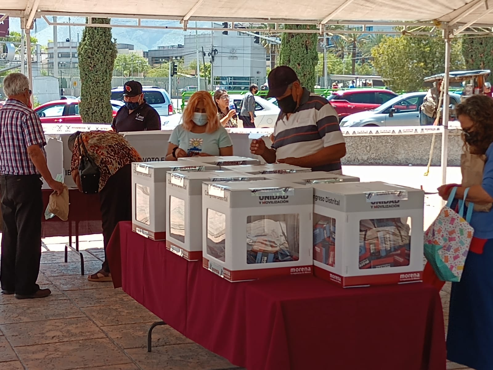 Igualmente, en la mesa de recepción del voto del distrito 7 ubicada en la Plaza de las Ciudades Hermanas, era constante la llegada de taxis y unidades de transporte urbano de diferentes rutas, de los que descendieron varias personas para participar en los procedimientos.
