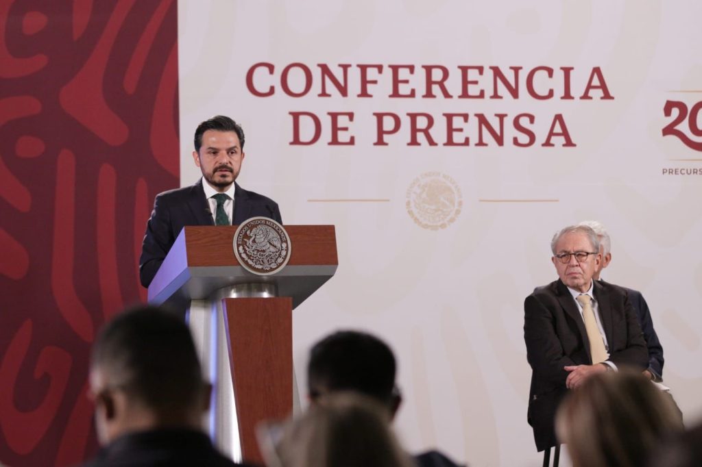 En el salón Tesorería de Palacio Nacional, Zoé Robledo invitó a los médicos especialistas interesados en estas vacantes a ingresar al sitio https://medicosespecialistas.gob.mx. (EL UNIVERSAL)