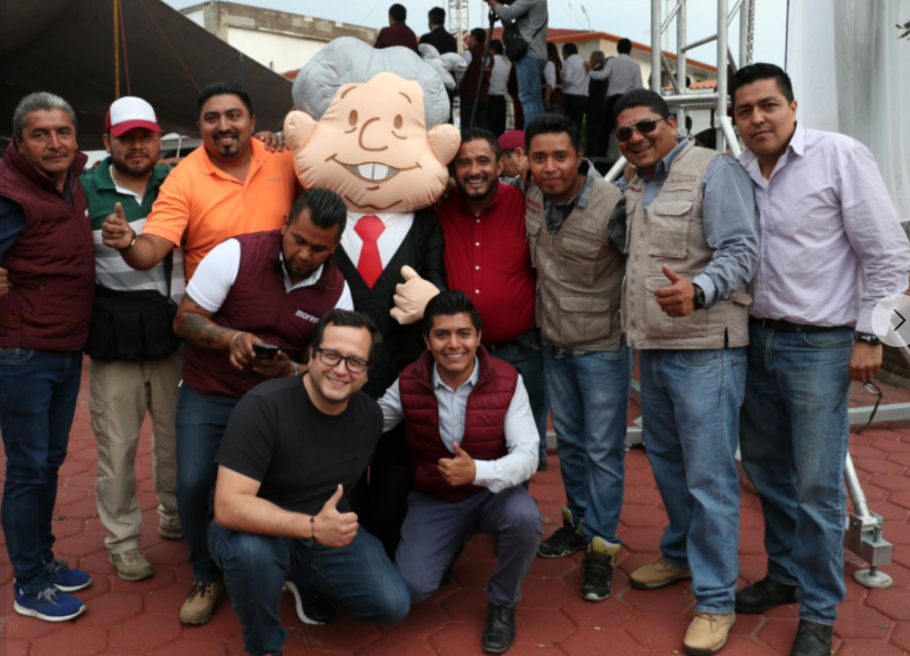 “En sus recorridos por la zona de Texcoco, José Ramón coincidió con Marco Antonio Negrete Galicia, quien alternaba su labor como administrador de HMC Negrete y como promotor de Morena. Del encuentro del hijo de AMLO con el “facturero” hay constancia en fotografías que éste compartió en su cuenta de Facebook. En una de las imágenes tomadas durante la campaña presidencial de 2018, José Ramón aparece en cuclillas, posando con un grupo de promotores de Morena, entre ellos Marco Antonio Negrete Galicia y su entonces empleado Rodrigo Violante (actual funcionario de la Presidencia), quienes sonríen junto a una botarga de López Obrador”.