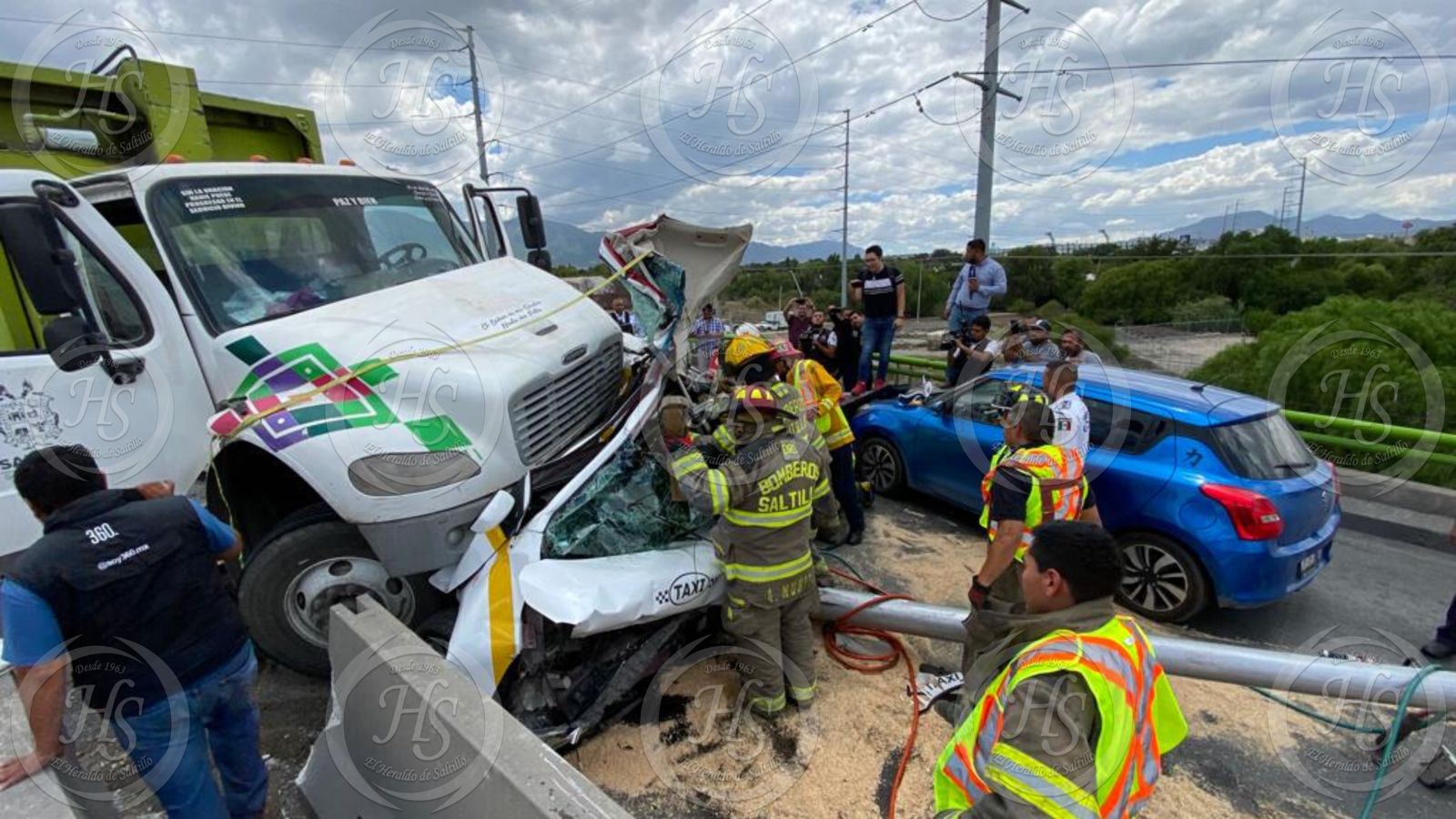 Máximo Prado Olvera, chofer de un camión recolector de basura, no alcanzó a frenar a tiempo al ver una fila de vehículos e impactó por alcance a un taxi, que era conducido por José Paulo Palacios, al cual prensó contra los muros de concreto.