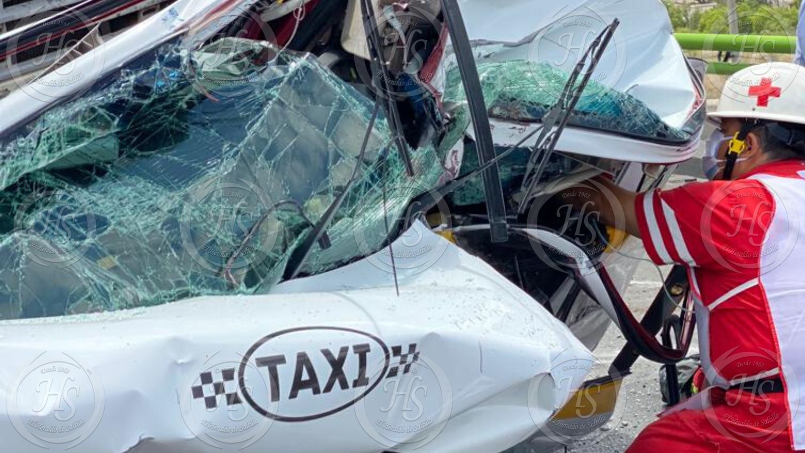 Personal del Cuerpo de Bomberos utilizaron herramienta hidráulica y después de algunos minutos lograron extraer al taxista, quien fue trasladado grave de salud a la Clínica 2 del IMSS.