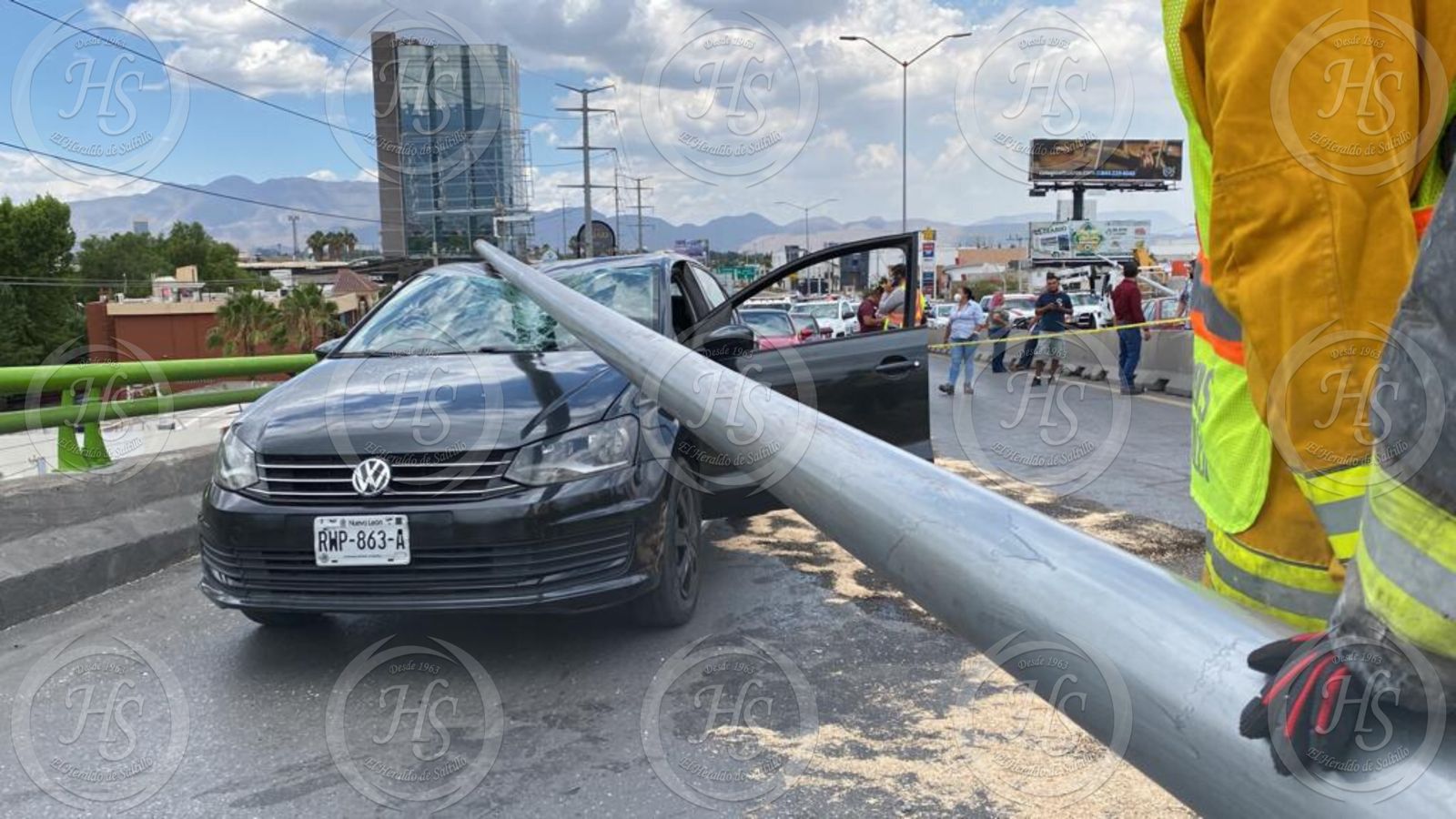 A raíz del siniestro, tres vehículos más se vieron involucrados y a uno de ellos le cayó encima una luminaria