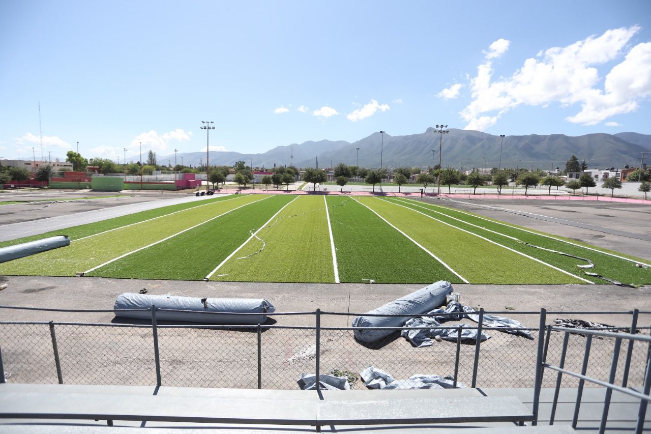 La Dirección de Infraestructura y Obra Pública informó que en el Biblioparque Sur se invierten 3.3 millones de pesos para rehabilitar por completo la cancha de futbol americano.