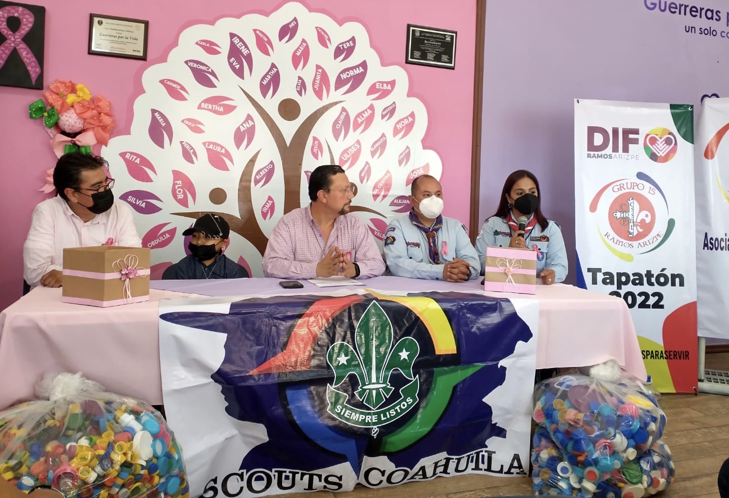 La Asociación de Scouts de México por medio de la comunidad de Caminantes del grupo 15 de Ramos Arizpe, con el apoyo del sistema DIF Municipal, han iniciado a partir de este jueves hasta el 22 de octubre del presente año la actividad denominada “Tapatón” en su edición 2022, en la que recolectarán tapas de plástico y otros materiales reciclables cuya venta hará posible la obtención de recursos para apoyar en el tratamiento de mujeres con cáncer que forman parte del grupo de autoayuda “Guerreras por la Vida”.
