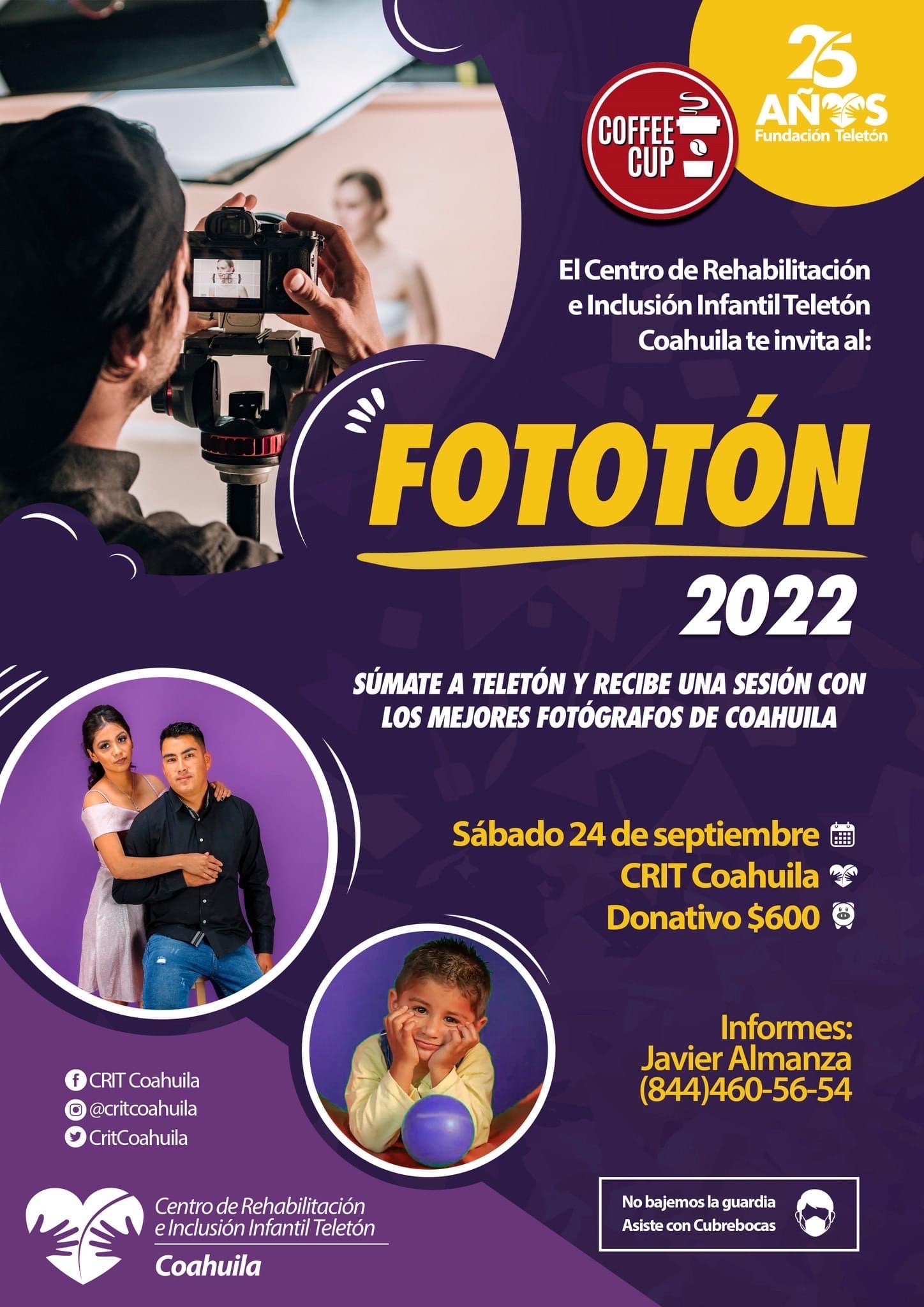 Como parte de las actividades para recaudar fondos para el Centro de Rehabilitación e Inclusión Infantil Teletón (CRIT), la institución llevará a cabo el “Fototón” en su edición 2022 el próximo 24 de septiembre del año en curso teniendo un costo de recuperación de 600 pesos para los participantes.