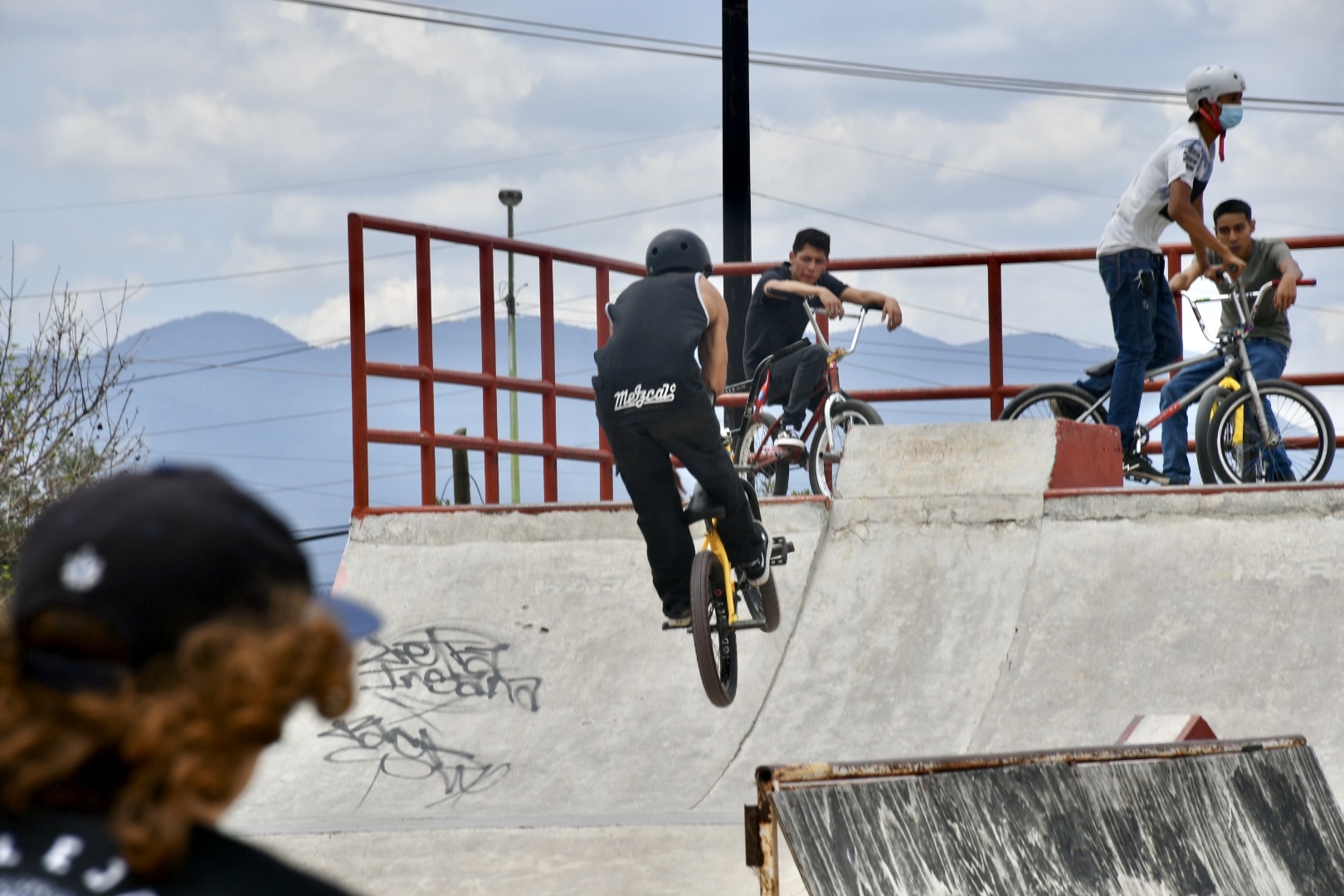 Al ritmo de la música electrónica y el rap, con la participación de más de 50 niños y jóvenes entre los 8 a los 23 años llevaron a cabo diversos ejercicios en el parque extremo para patinetas y bicicletas que se encuentra en las instalaciones de la Madriguera.