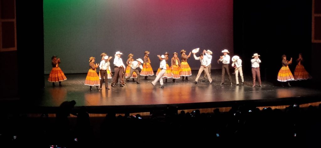 El programa de baile abrió el telón con Danza Azteca, Danza Xochipitzautl de Puebla, Sones de Jalisco, Huapangos de Hidalgo, Costa de Chiapas y Calabaceados de Baja California, despliegue de vestuario colorido y arte dancística que sólo el baile folklórico ofrece.