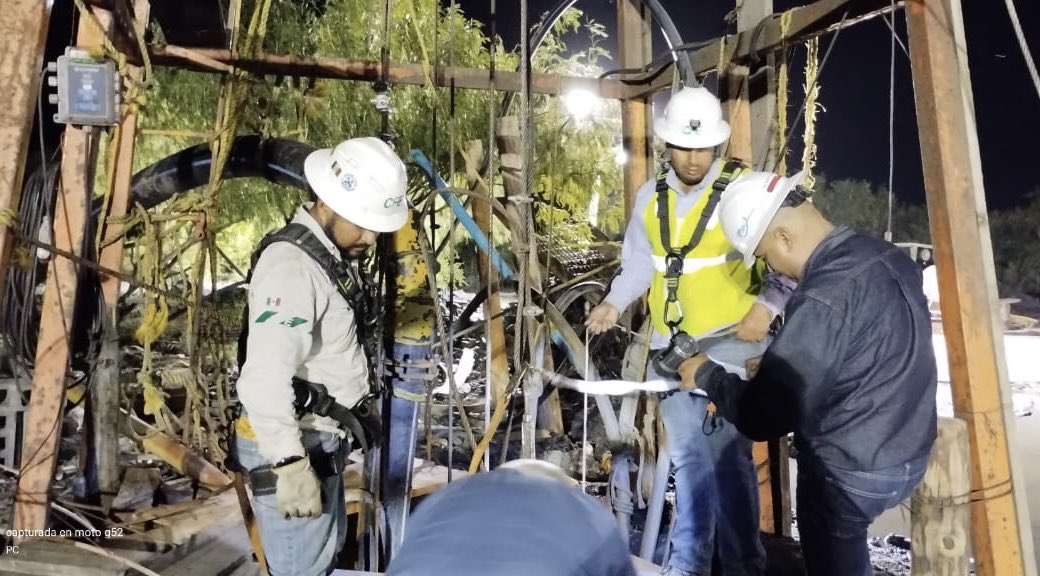 Sabinas.- Continúan los estudios geofísicos y los trabajos de perforación de barrenos para determinar los sitios del subsuelo donde se filtra el agua que se mantiene en el interior de los pozos de carbón donde diez mineros permanecen atrapados desde el 3 de agosto.