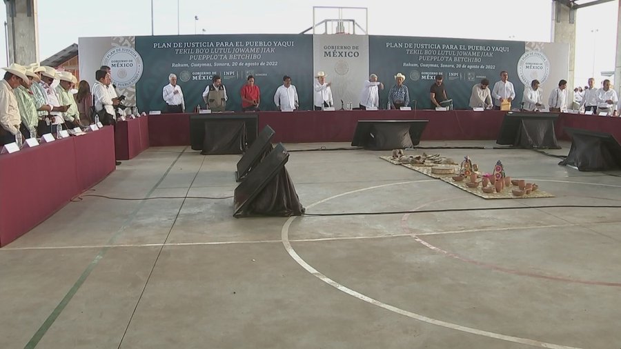Al supervisar los avances de los compromisos del Plan de Justicia para el Pueblo Yaqui, en el pueblo de Rahum, el Ejecutivo federal adelantó que podría emitir un decreto para que las autoridades tradicionales de los ocho pueblos Yaquis tengan y manejen un presupuesto para dar manteniendo a las obras de infraestructura que se realizan para mejorar sus comunidades.