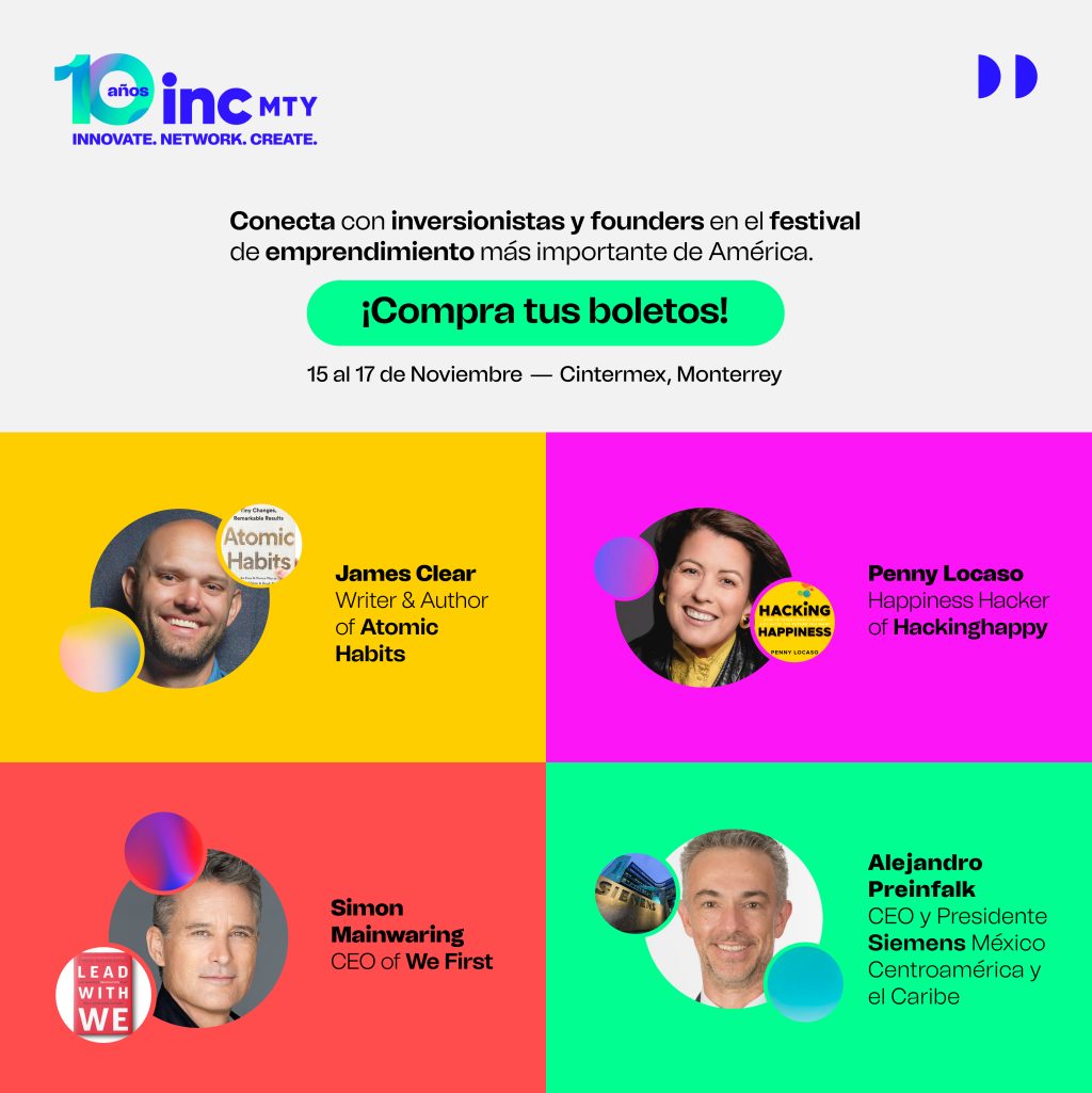 James Clear, Alejandro Preinfalk, Penny Locaso y Simon Mainwaring son algunos de los conferencistas de alto nivel que estarán presentes durante el décimo aniversario de INCmty.