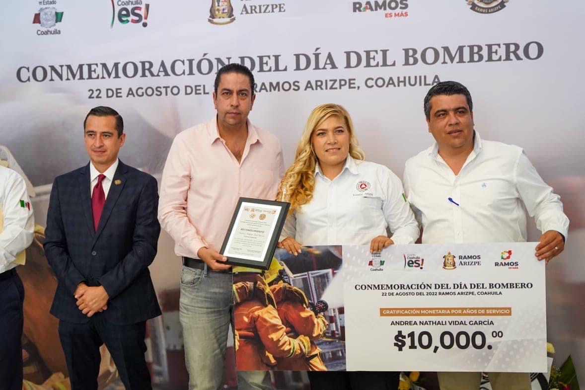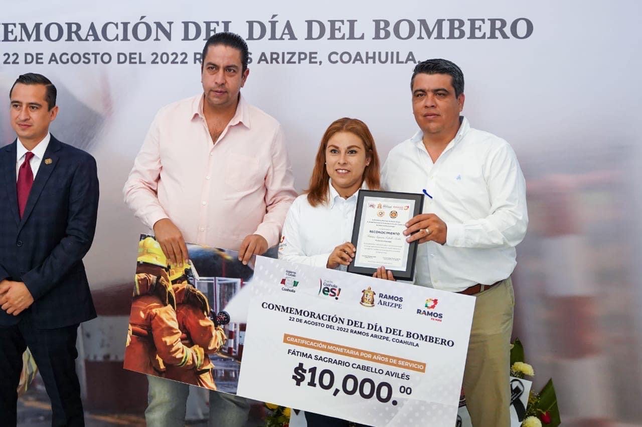Como parte de la celebración por el día del bombero que se celebra cada 22 de agosto, el gobierno municipal de Ramos Arizpe a través de la dirección de Protección Civil y Bomberos, festejó a los integrantes de la corporación con un desayuno, entrega de estímulos económicos y equipo táctico por parte del alcalde, Chema Morales Padilla.